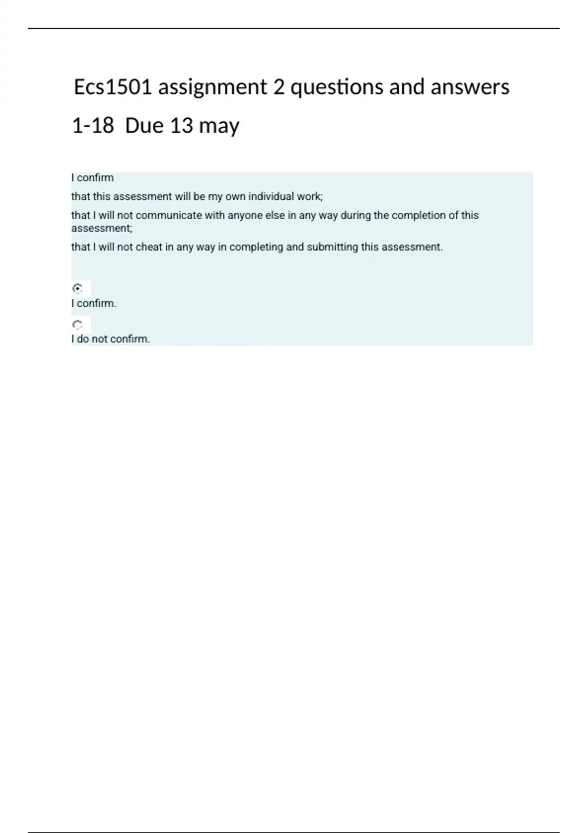 Ecs1501 assignment 2 questions and answers