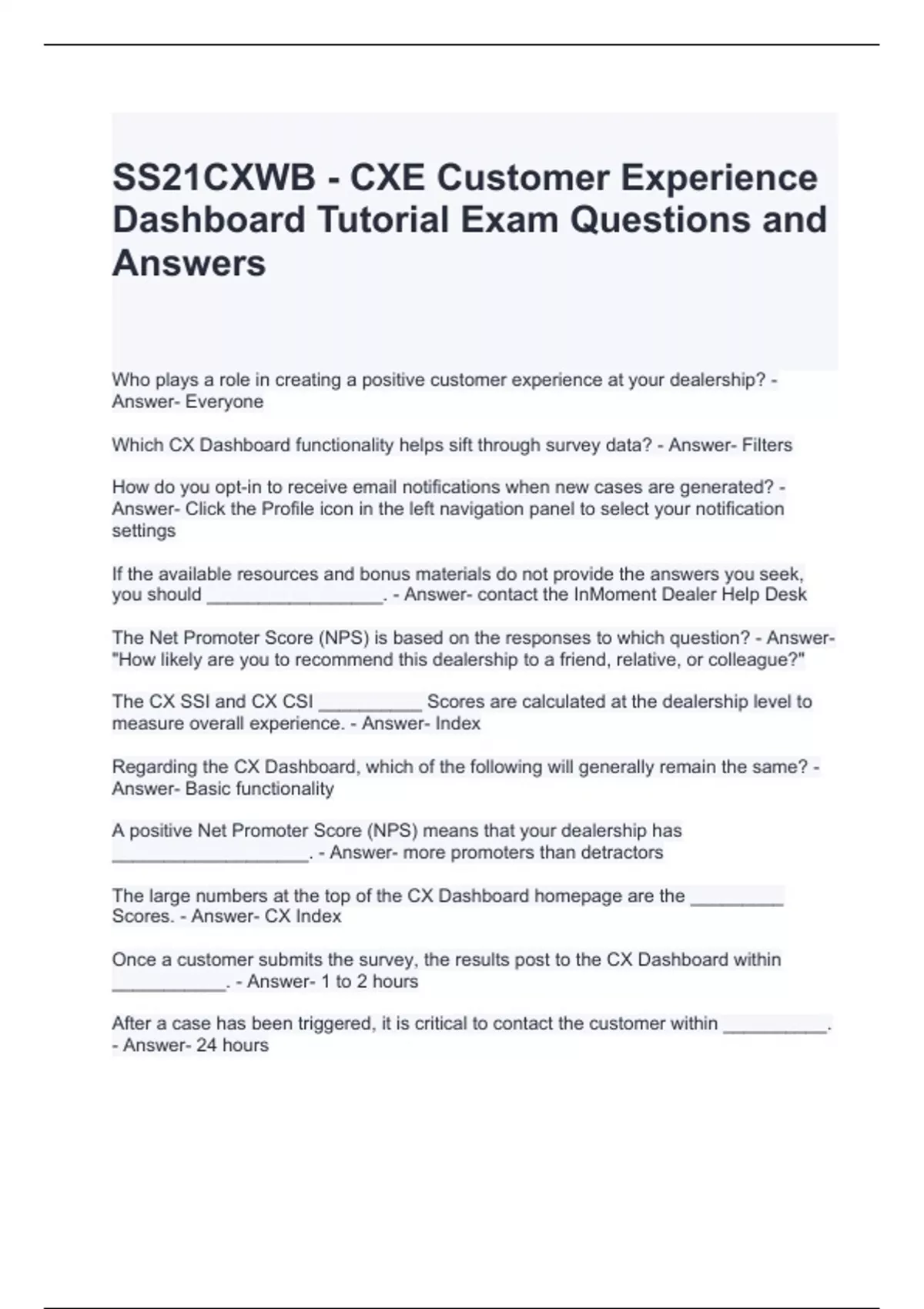 SS21CXWB - CXE Customer Experience Dashboard Tutorial Exam Questions and Answers