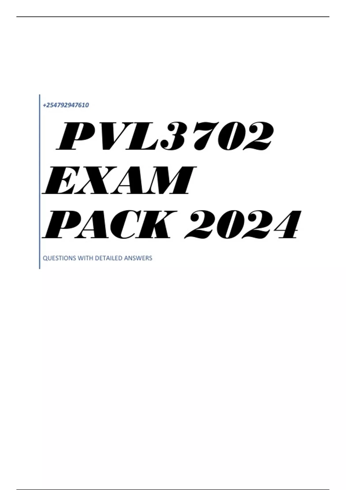 QUESTIONS AND ANSWERS PVL3702 EXAM PACK 2024