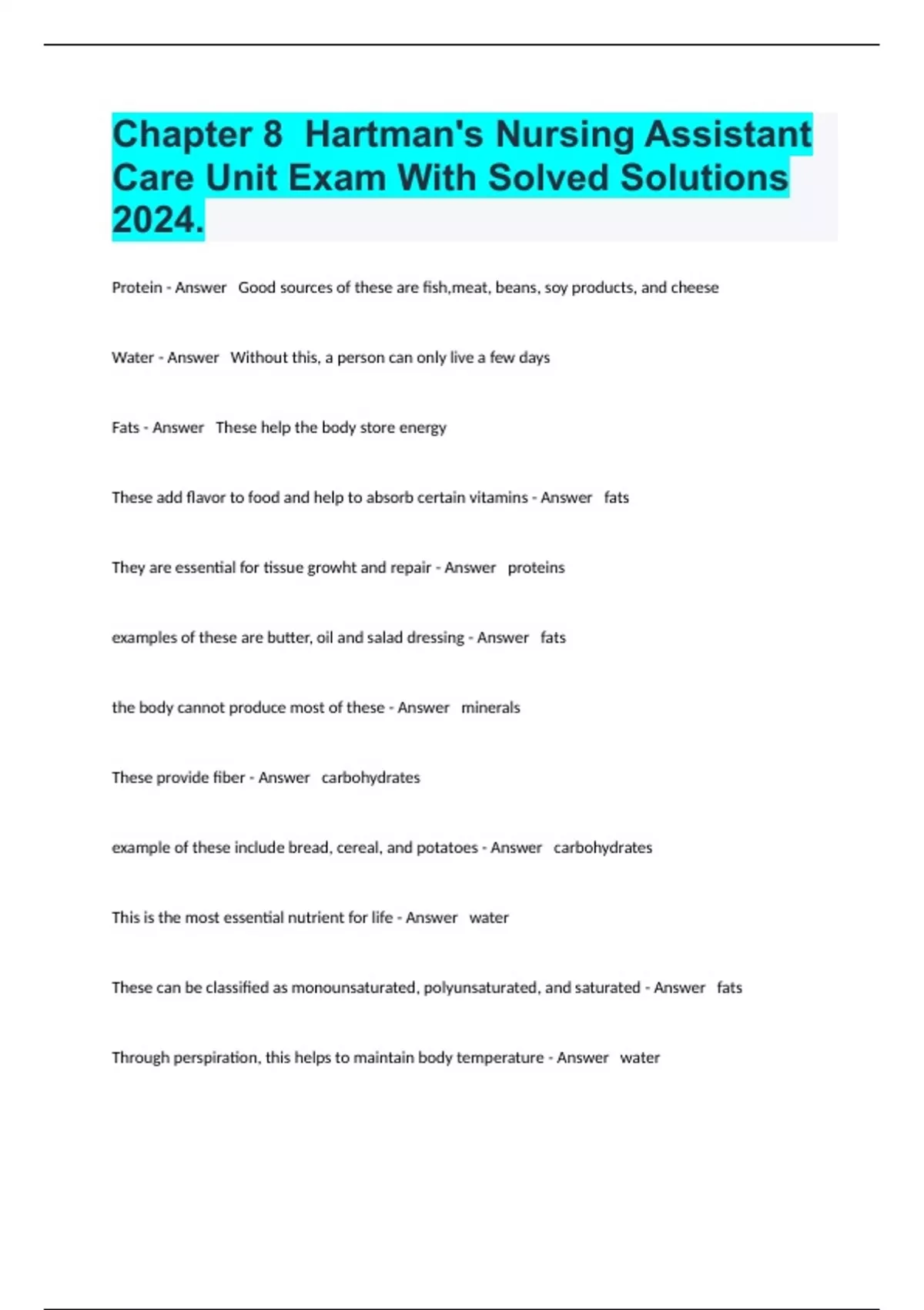 Chapter 8 Hartman's Nursing Assistant Care Unit Exam With Solved Solutions 2024.