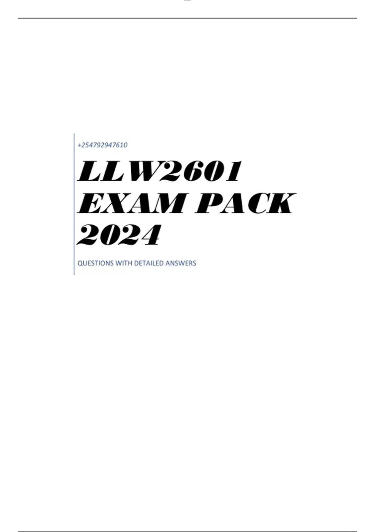 QUESTIONS AND ANSWERS LLW2601 EXAM PACK 2024