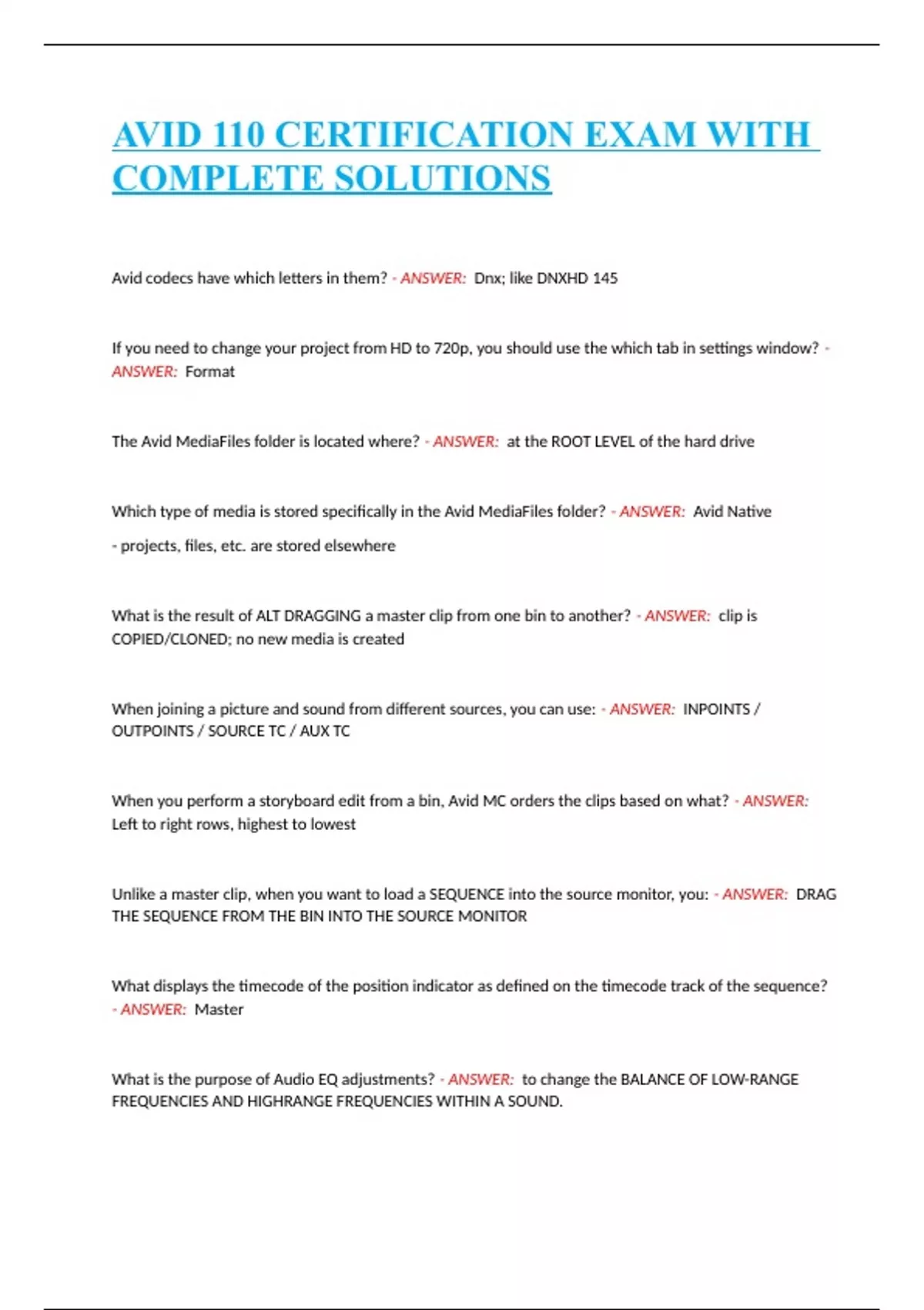AVID 110 CERTIFICATION EXAM WITH COMPLETE SOLUTIONS