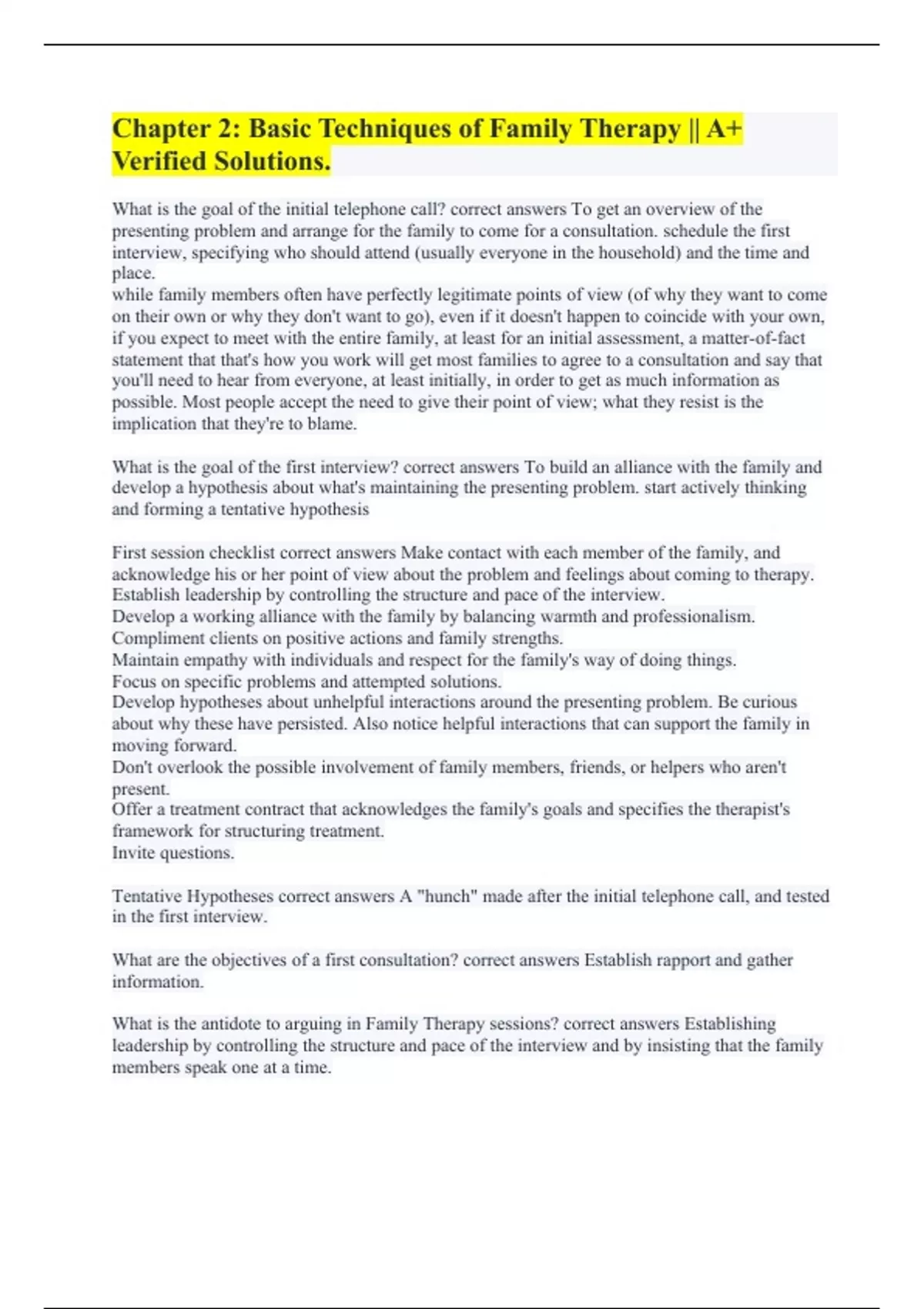 Chapter 2: Basic Techniques of Family Therapy || A+ Verified Solutions.