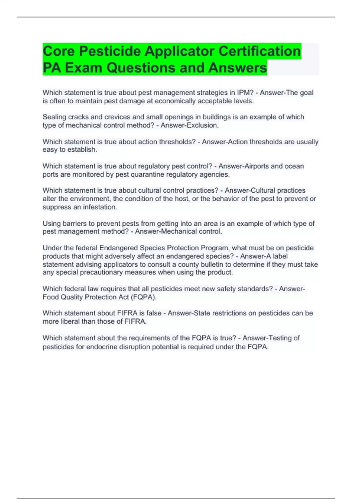 Which statement about FIFRA is false - Answer-State restrictions on pesticides can be