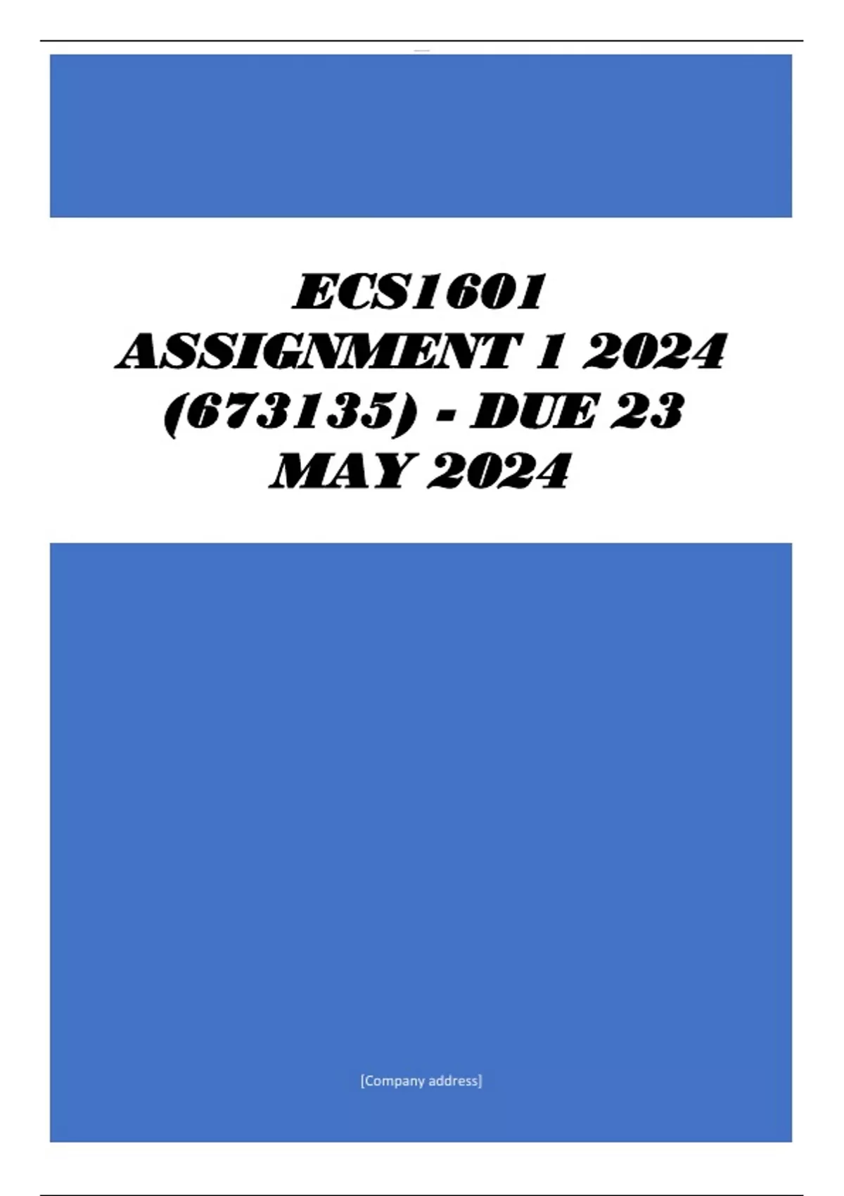 lOMoAR cPSD|42036583 [Company address] ECS1601 ASSIGNMENT 1 2024 (673135) - DUE 23 MAY 2024