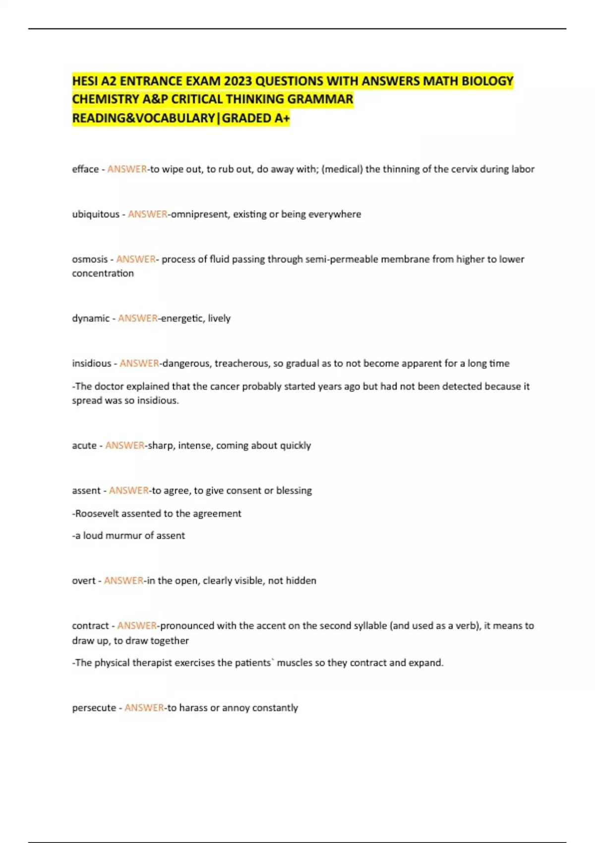 HESI A2 ENTRANCE EXAM 2023 QUESTIONS WITH ANSWERS MATH BIOLOGY CHEMISTRY