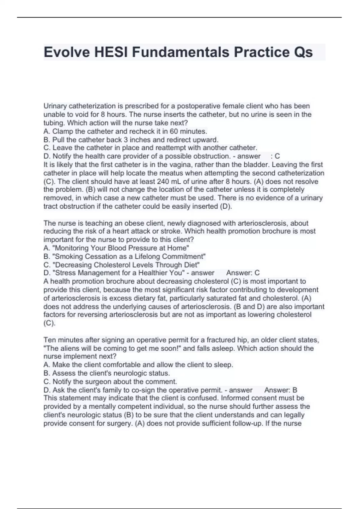 Evolve HESI Fundamentals Practice Qs Questions and Answers 100% correct