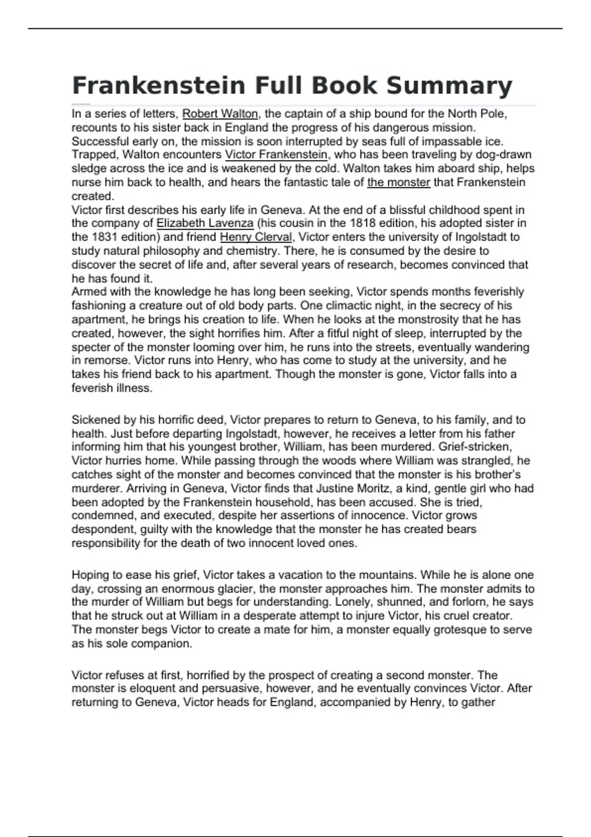 Walton tells the remainder of the story in another series of letters to his sister. Victor,