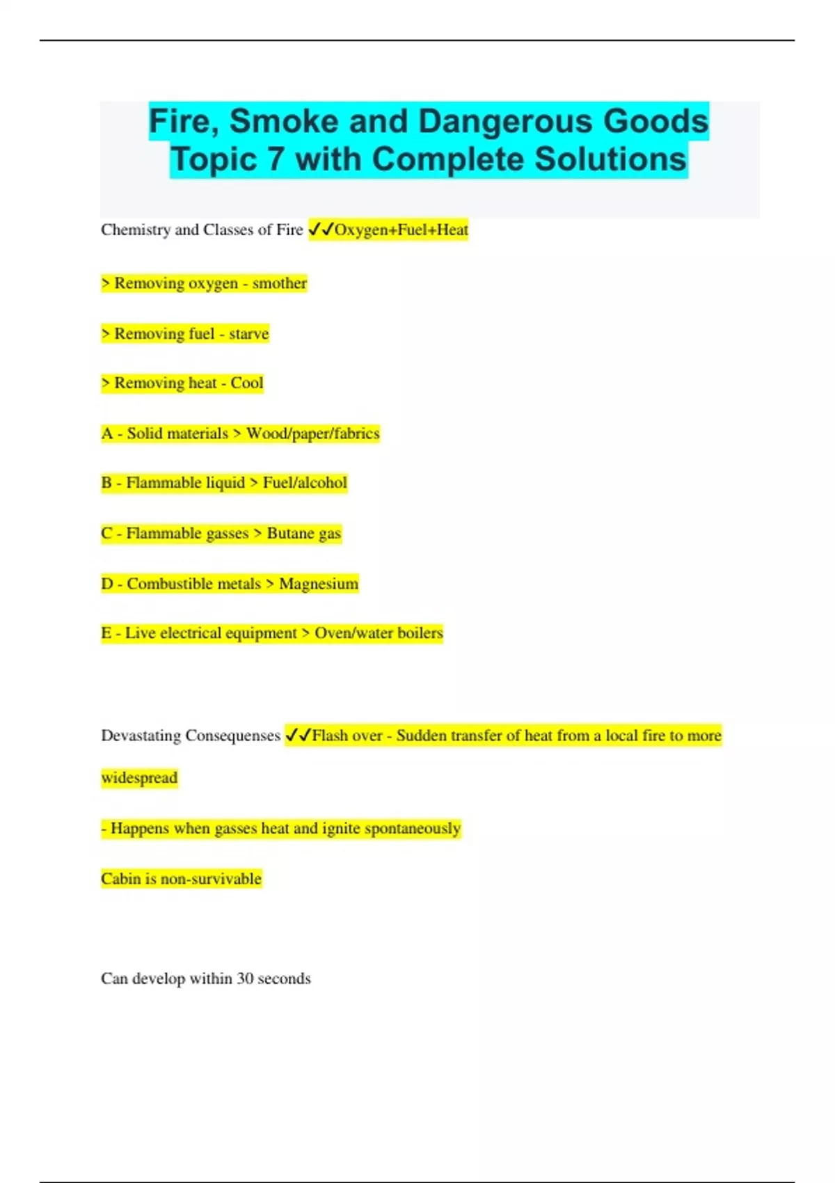 Fire, Smoke and Dangerous Goods Topic 7 with Complete Solutions