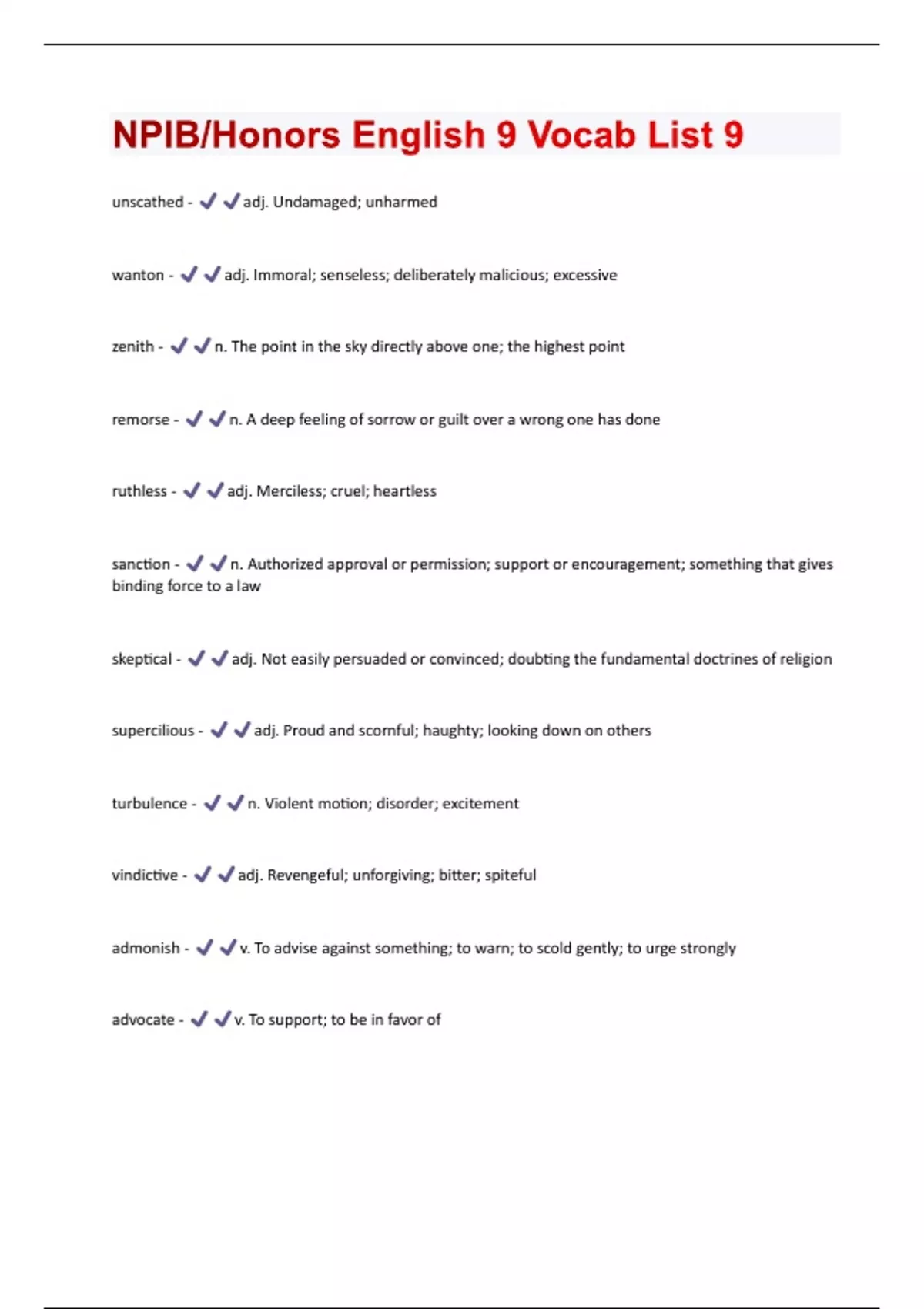 - NPIB/Honors English 9 Vocab List 9