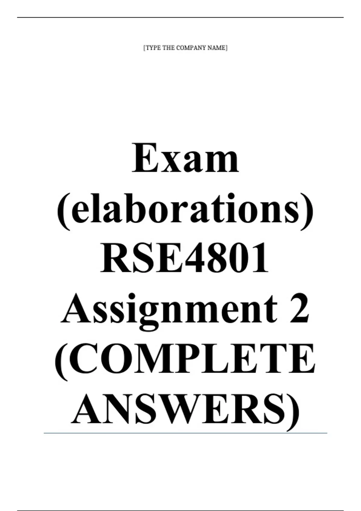 Exam (elaborations) RSE4801 Assignment 2 (COMPLETE ANSWERS) 2024 • Course • Research in Education (RSE4801) (RSE4801) • Institution • University Of South Africa (Unisa) • Book • How to Design and Evaluate Research in Education RSE4801 Assignment 2 (COMPLETE ANSWERS) 2024 ;100 % TRUSTED workings, explanations and solutions. ...........