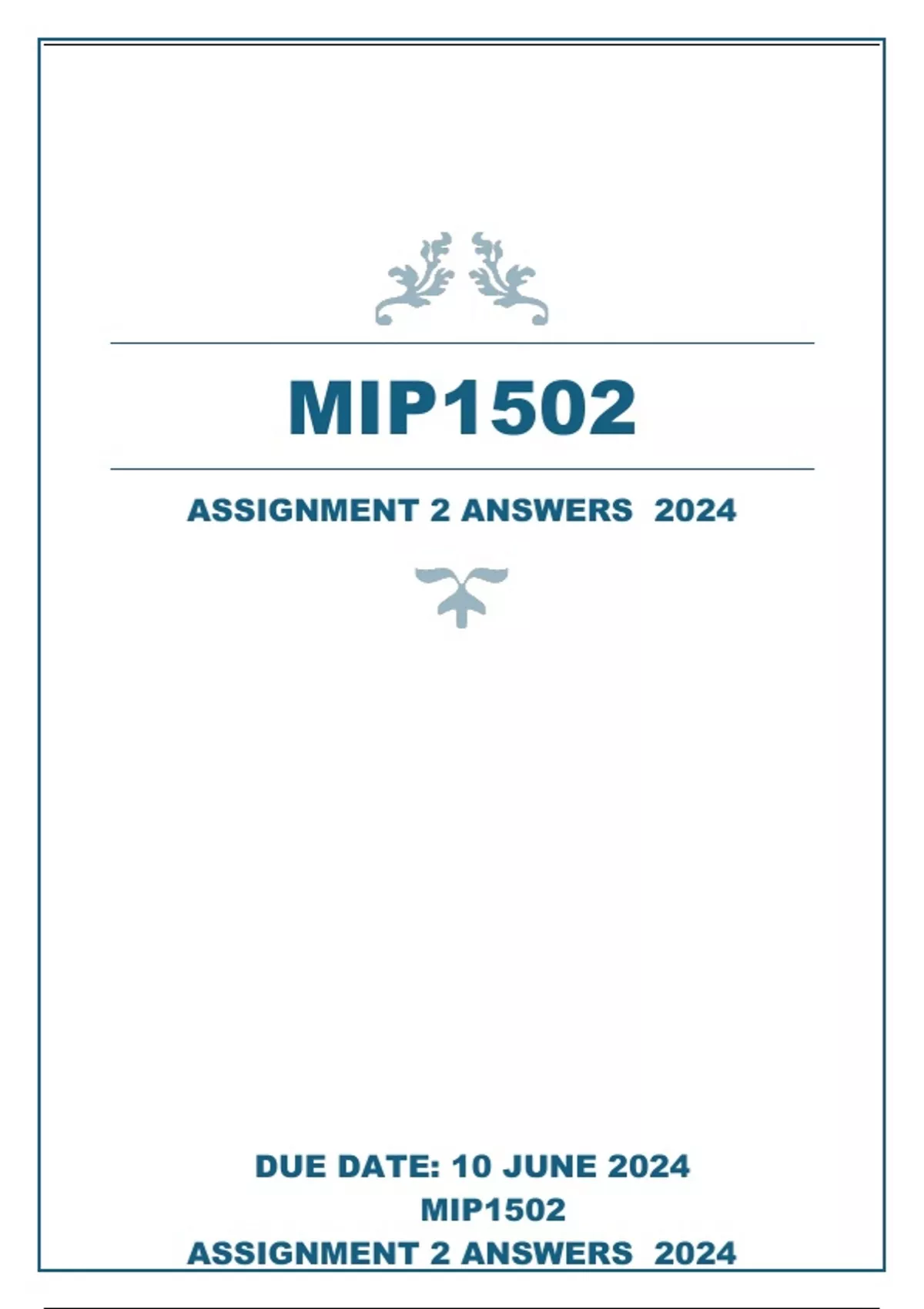 MIP1502 ASSIGNMENT 2 ANSWERS 2024