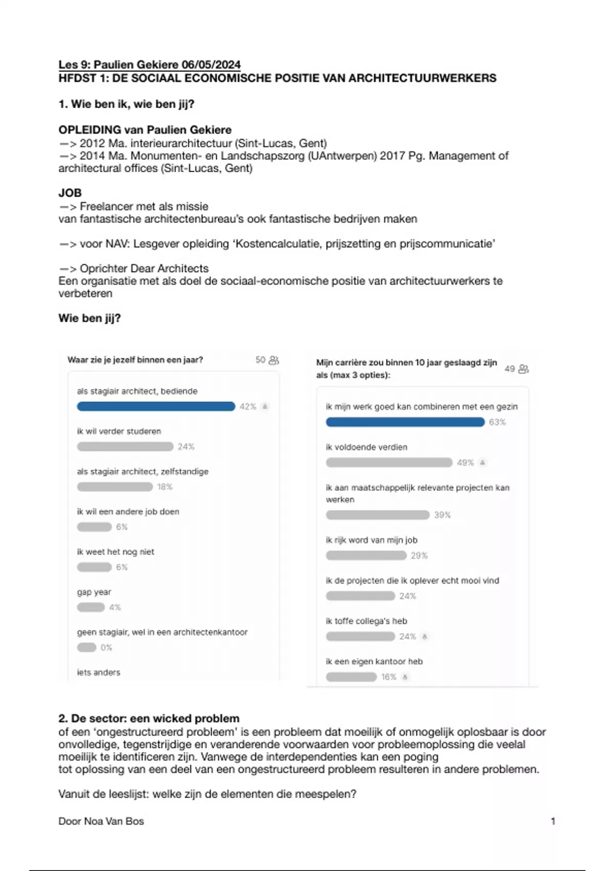 HFDST 1: DE SOCIAAL ECONOMISCHE POSITIE VAN ARCHITECTUURWERKERS