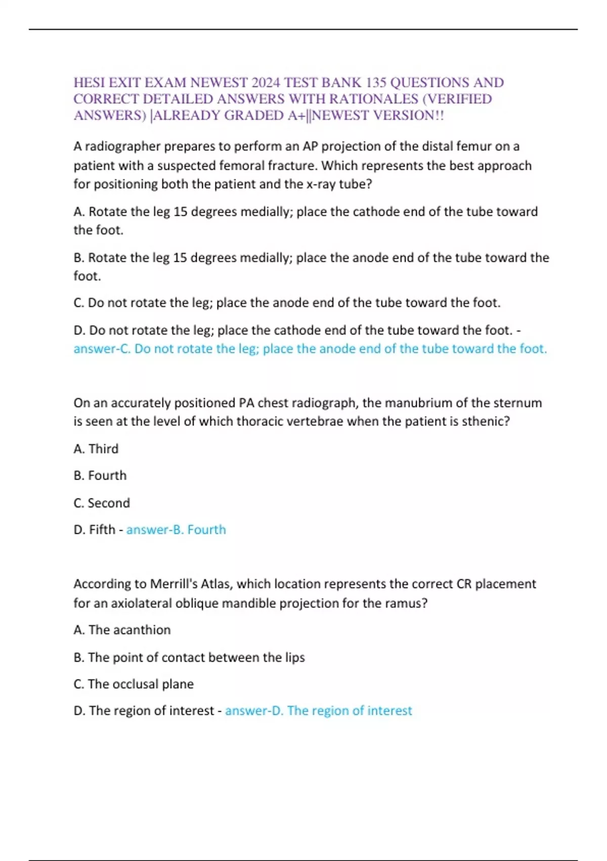 HESI EXIT EXAM NEWEST 2024 TEST BANK 135 QUESTIONS AND CORRECT DETAILED ANSWERS WITH RATIONALES (VERIFIED ANSWERS) |ALREADY GRADED A+||NEWEST VERSION!! HESI EXIT EXAM NEWEST 2024 TEST BANK 135 QUESTIONS AND CORRECT DETAILED ANSWERS WITH RATIONALES (VERIFIED ANSWERS) |ALREADY GRADED A+||NEWEST VERSION!! HESI EXIT EXAM NEWEST 2024 TEST BANK 135 QUESTIONS AND CORRECT DETAILED ANSWERS WITH RATIONALES (VERIFIED ANSWERS) |ALREADY GRADED A+||NEWEST VERSION!!