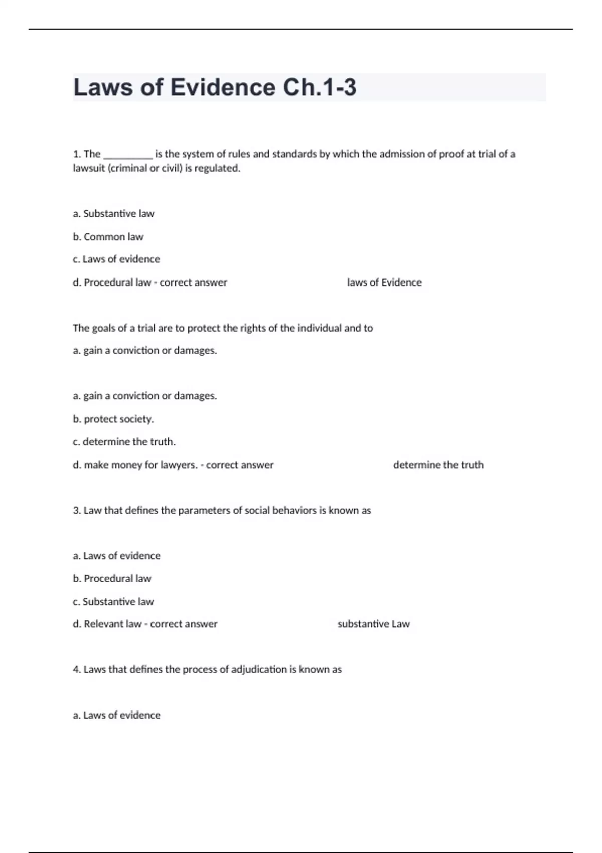 Laws of Evidence Ch.1-3 Comprehensive Exam With Accurate Answers|2024.