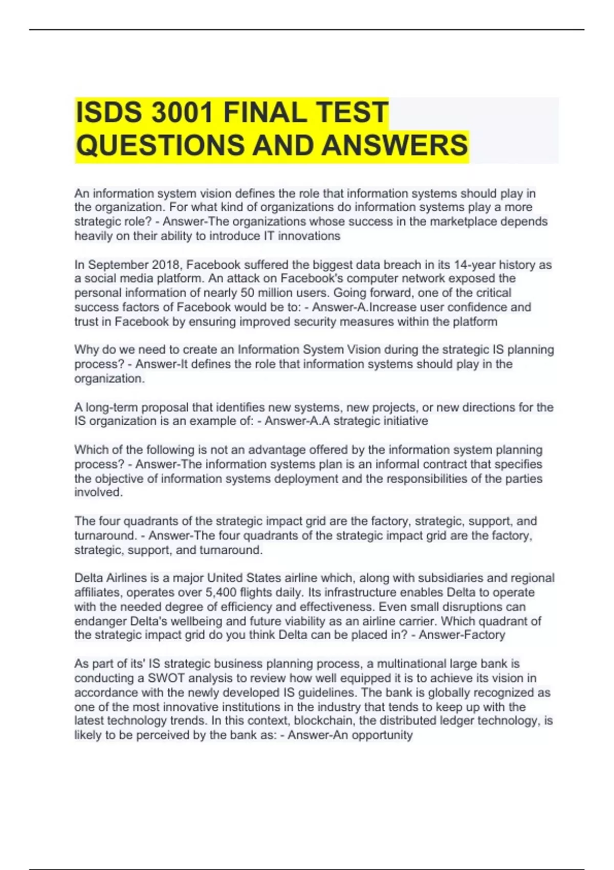 ISDS 3001 FINAL TEST QUESTIONS AND ANSWERS.docx