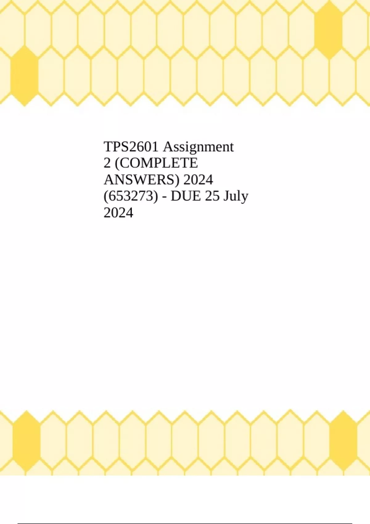 TPS2601 Assignment 2 (COMPLETE ANSWERS) 2024 (653273) - DUE 25 July 2024..Detailed work, solutions, memos, notes, and explanations