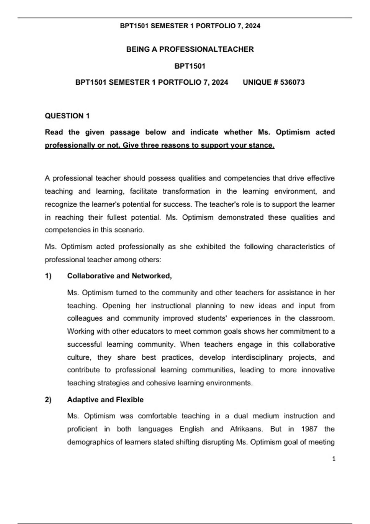 BPT1501 SEMESTER 1 PORTFOLIO 7, 2024 UNIQUE # 536073