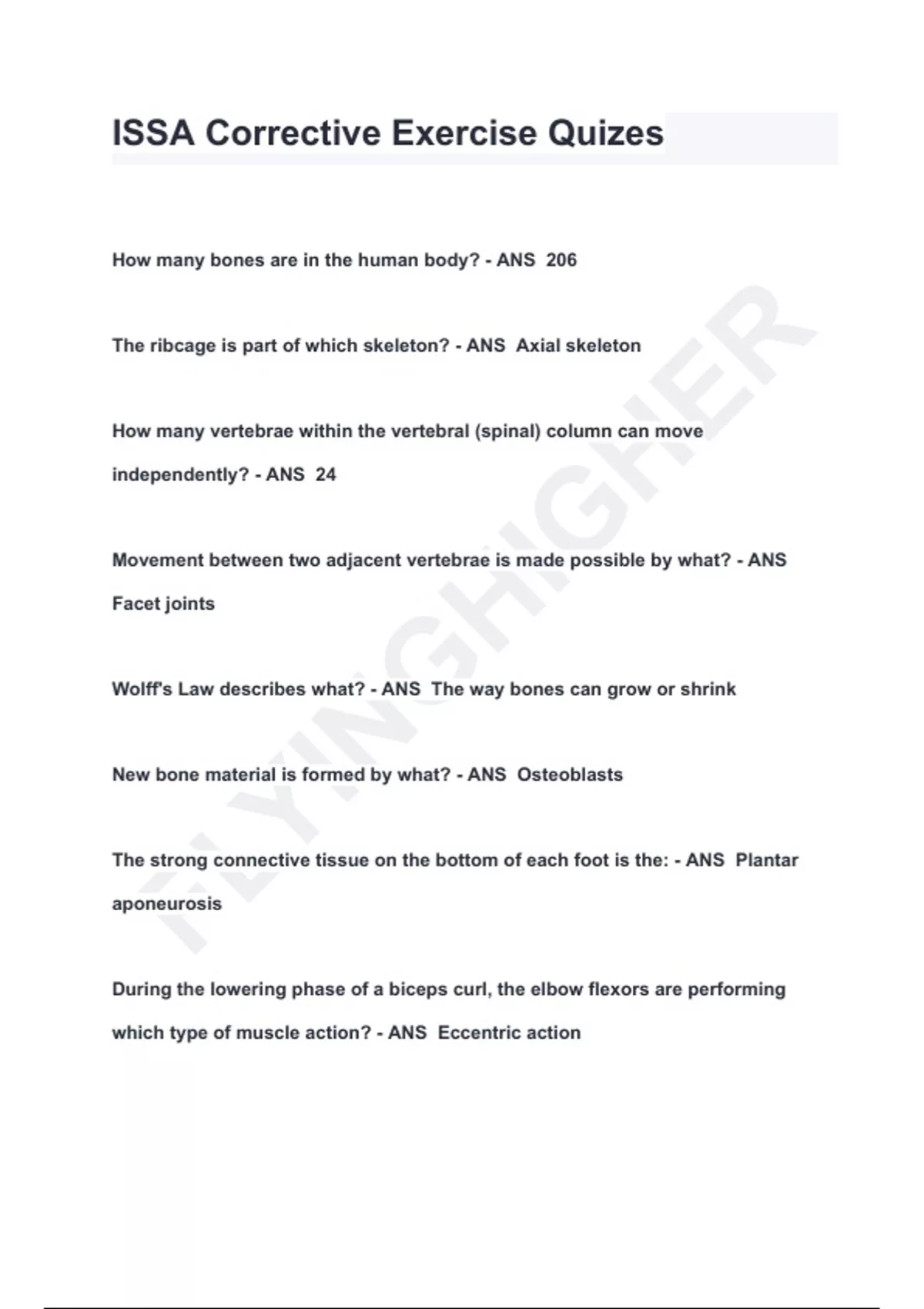 ISSA Corrective Exercise Quizes QUESTIONS & ANSWERS 2024 ( A+ GRADED 100% VERIFIED)