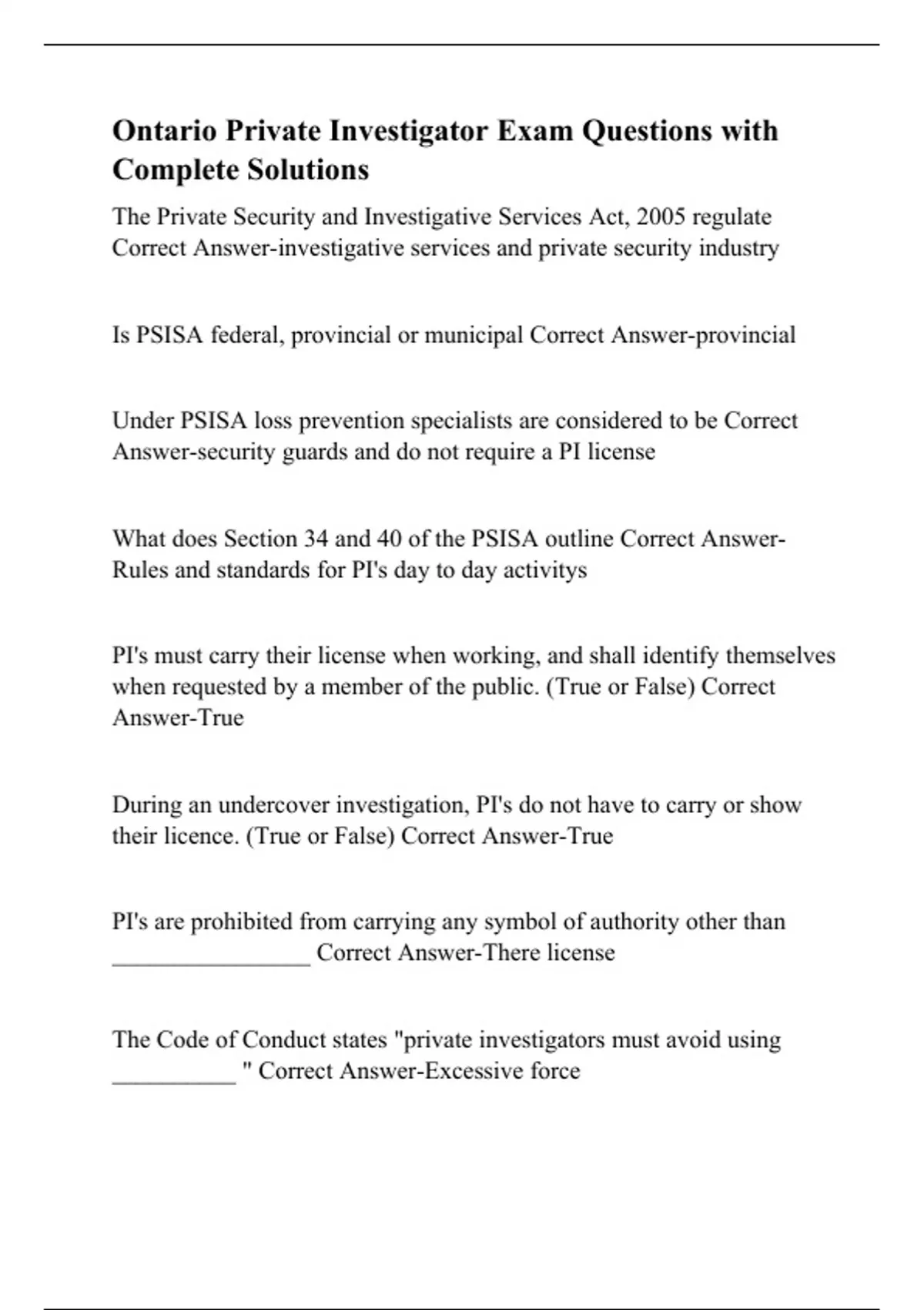 Ontario Private Investigator Exam Questions with Complete Solutions