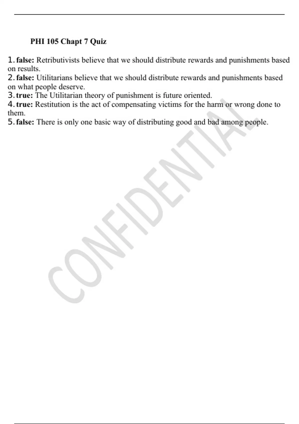 1. false: Retributivists believe that we should distribute rewards and punishments based