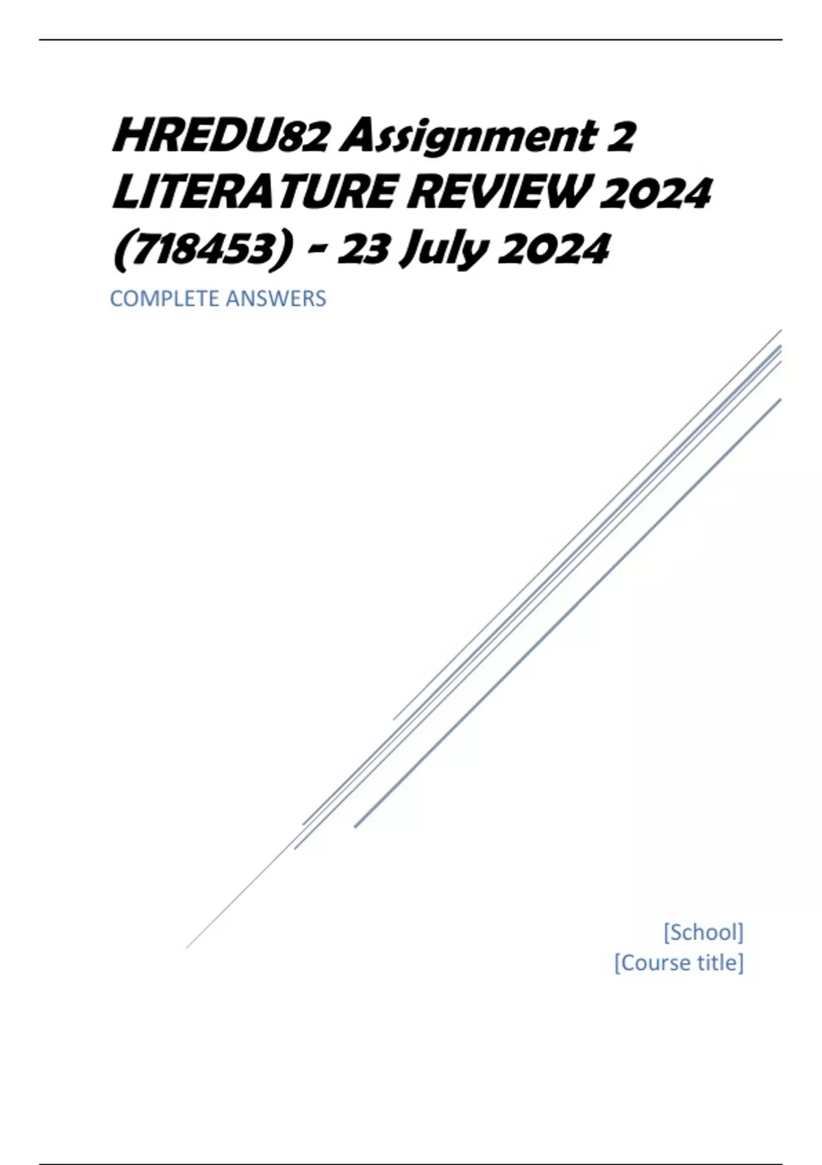 HREDU82 Assignment 2 LITERATURE REVIEW 2024 (718453) - 23 July 2024 QUALITY ANSWERS