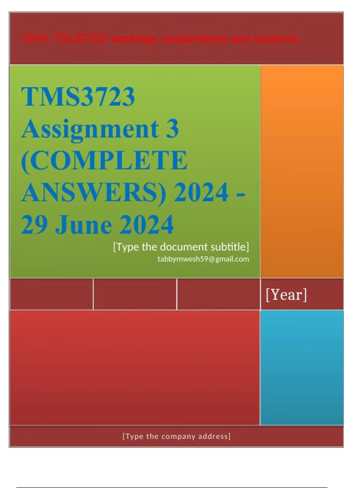 TMS3723 Assignment 3 (COMPLETE ANSWERS) 2024 - 29 June 2024;