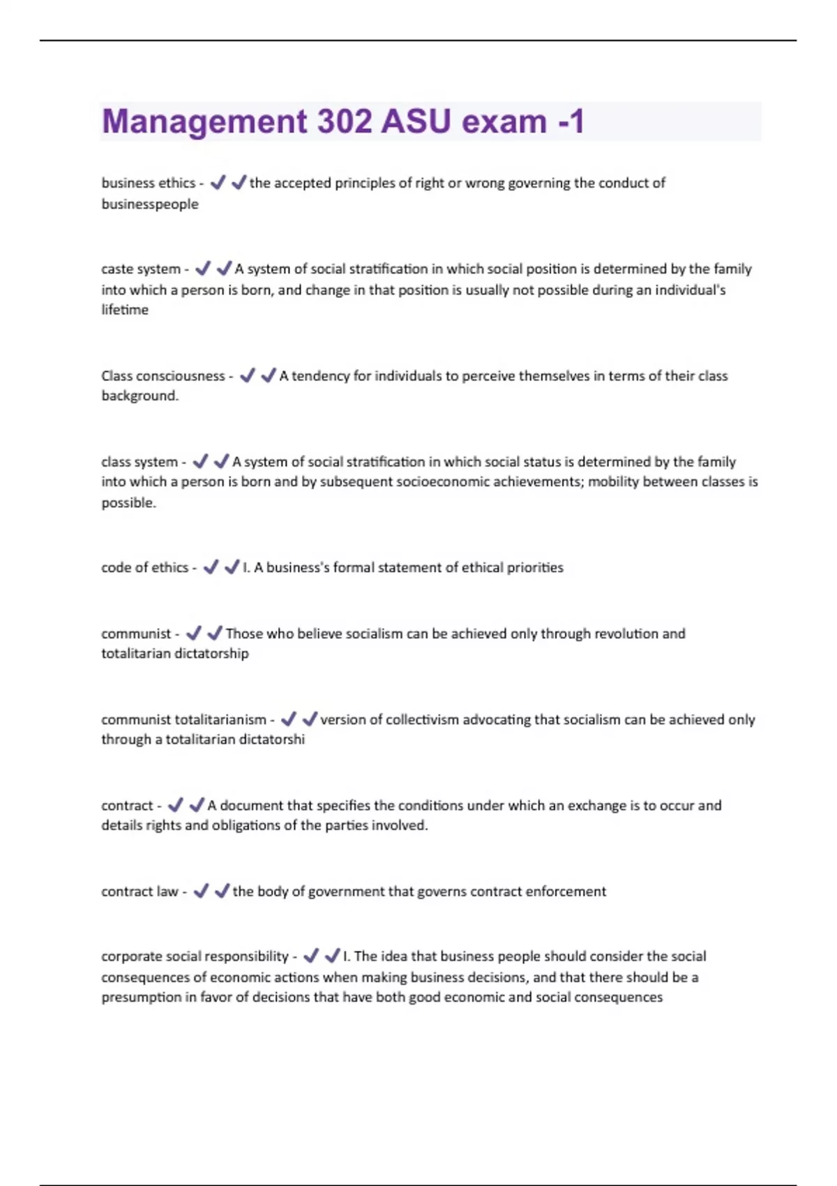 Management 302 ASU exam -1 Questions And Answers With Verified Solutions