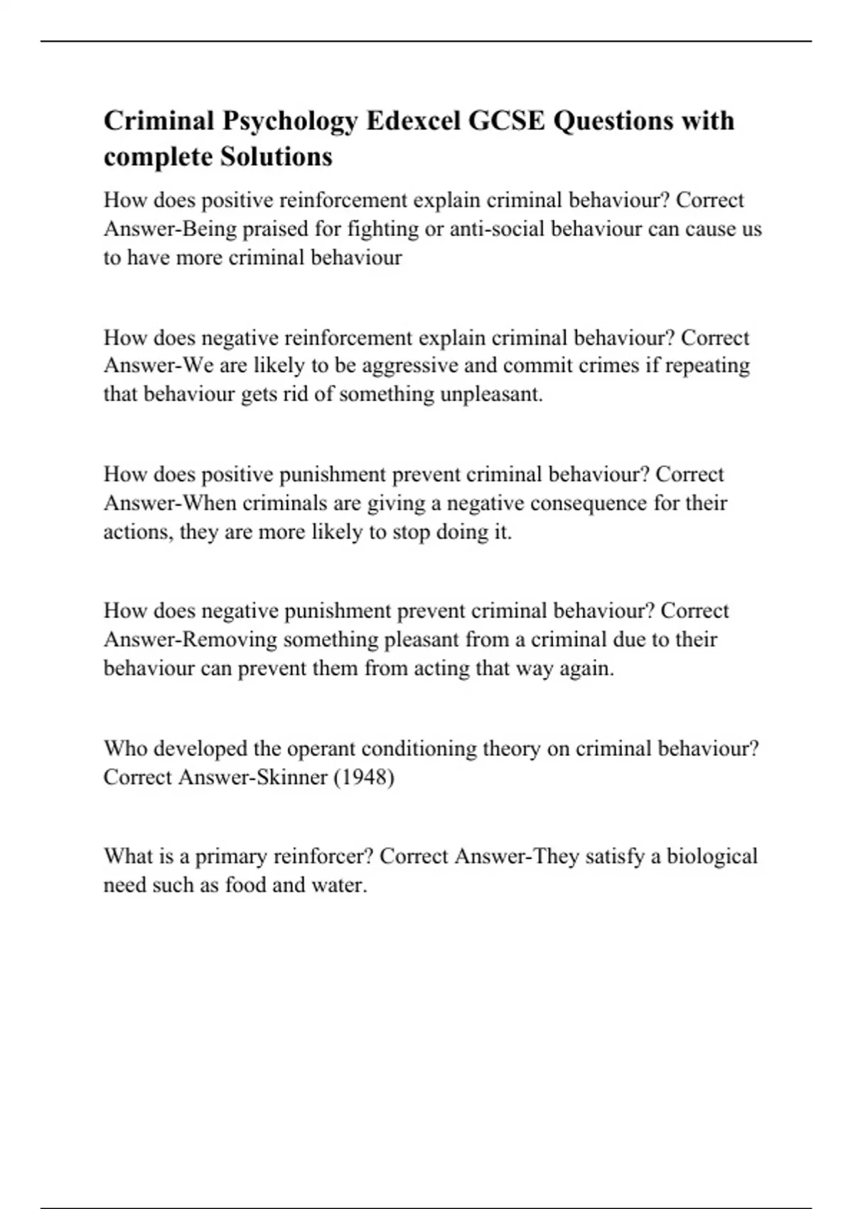 Criminal Psychology Edexcel GCSE Questions with complete Solutions