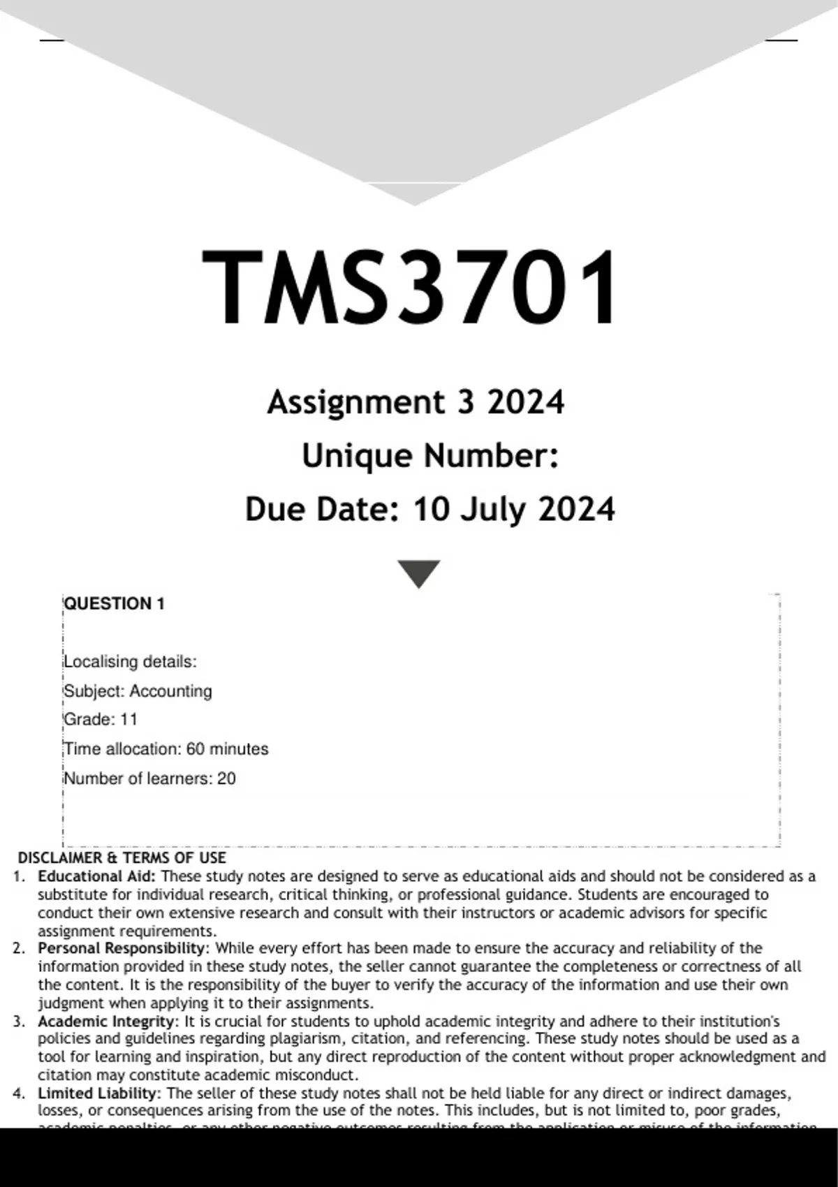 TMS3701 Assignment 3 (ANSWERS) 2024 - DISTINCTION GUARANTEED