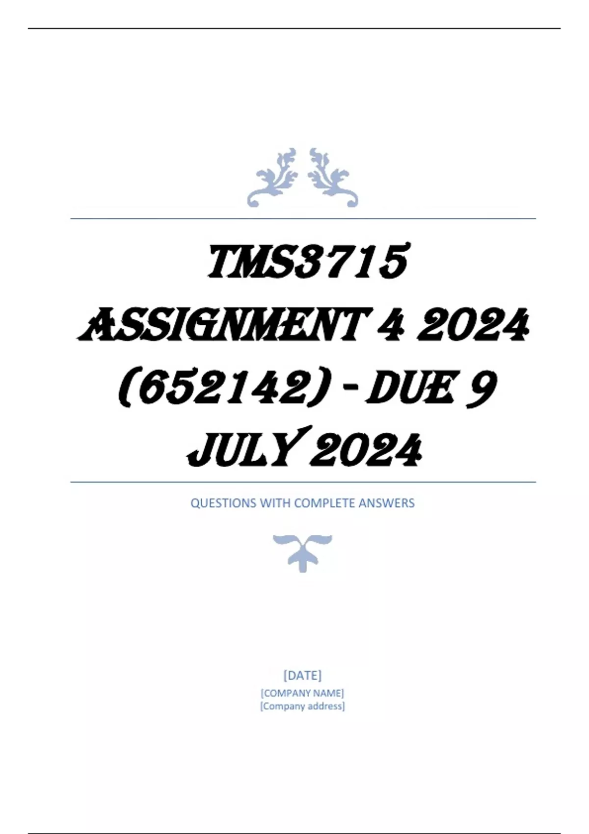 TMS3715 Assignment 4 2024 (652142) QUESTIONS AND ANSWERS