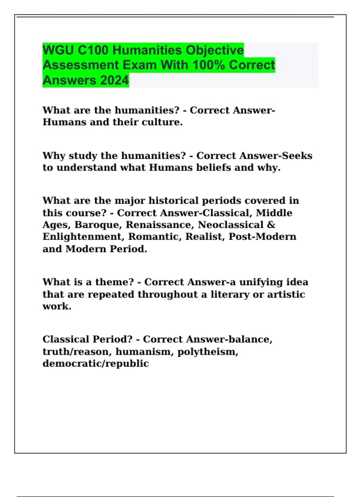 WGU C100 Humanities Objective Assessment Exam With 100% Correct Answers 2024