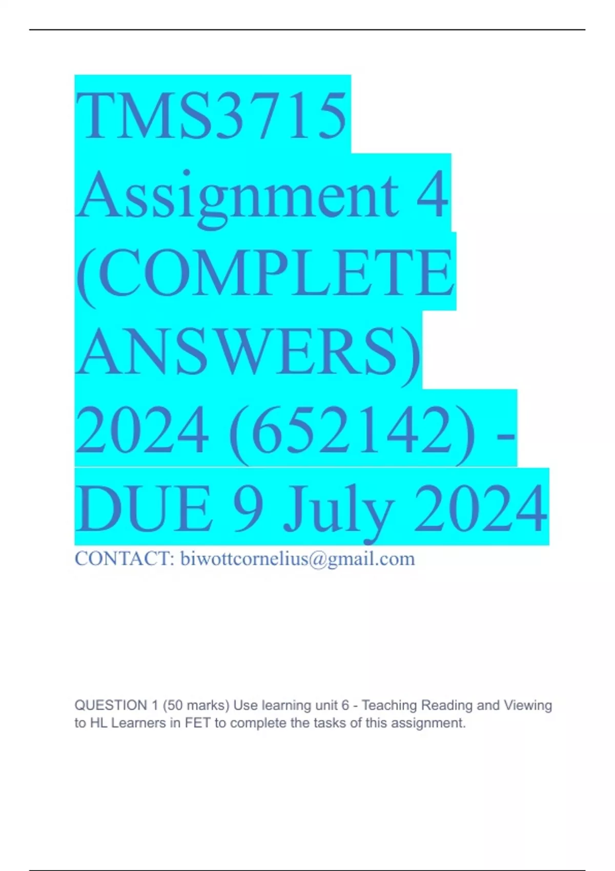 TMS3715 Assignment 4 (COMPLETE ANSWERS) 2024 (652142) - DUE 9 July 2024