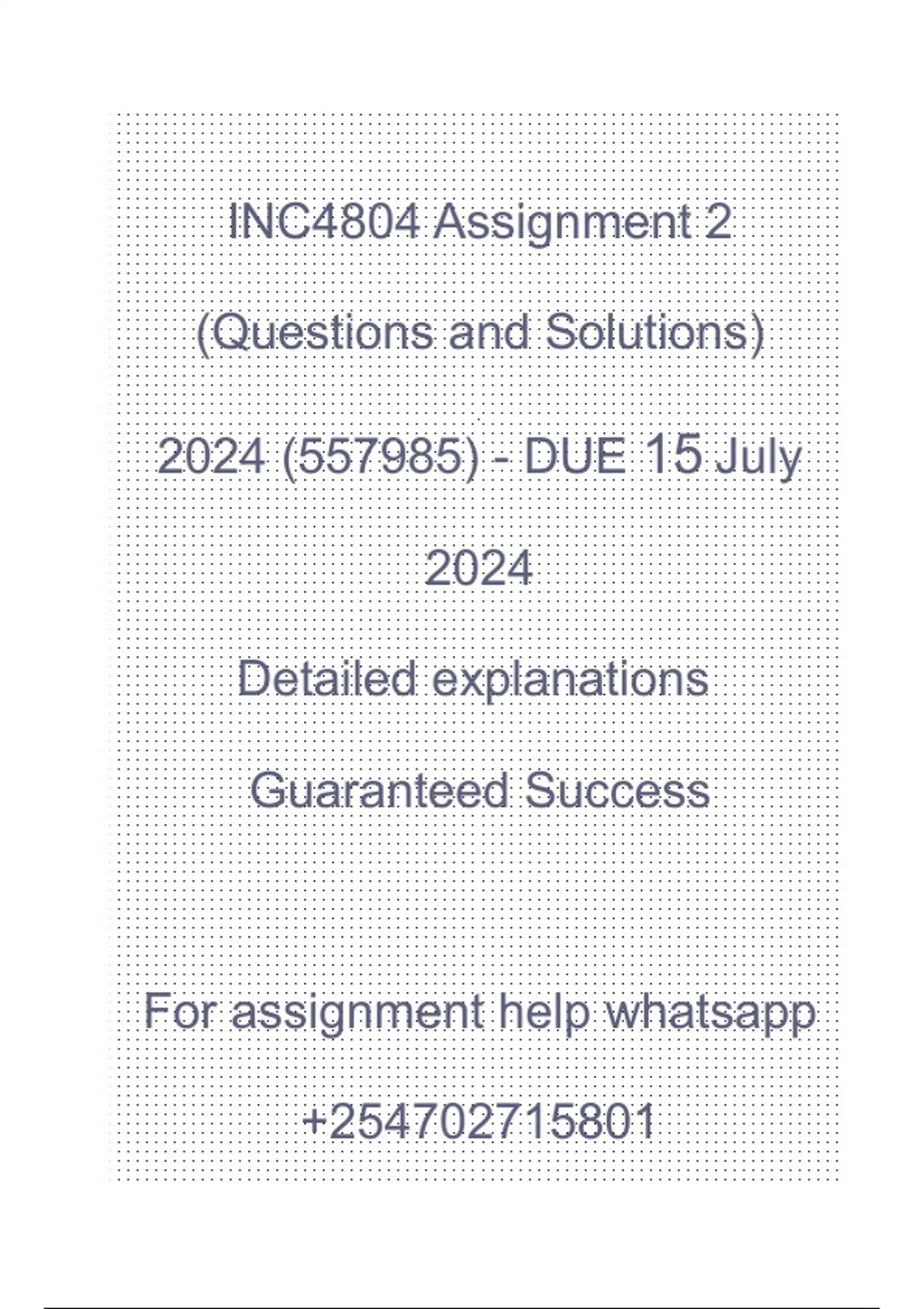 , INC4804 Assignment 2 (COMPLETE ANSWERS) 2024 (557985) - DUE 15