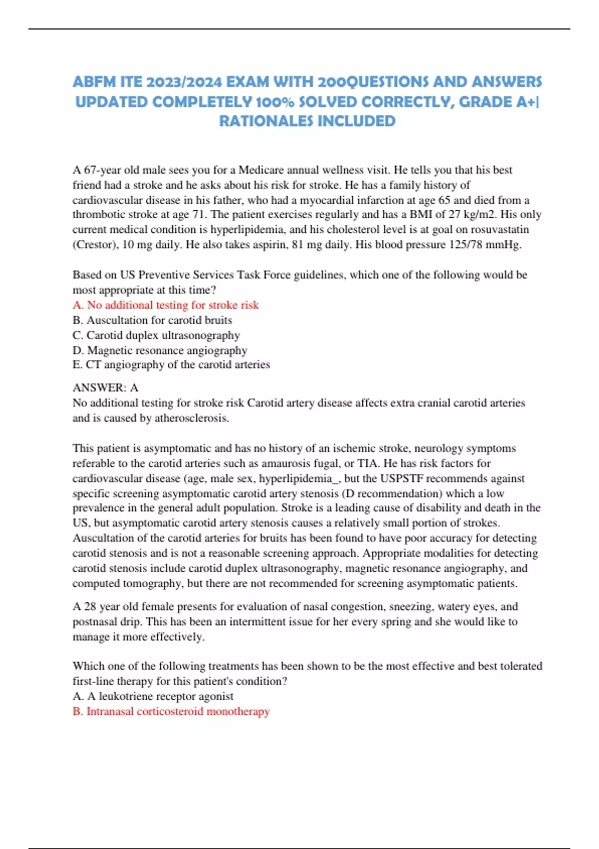 ABFM ITE 2023/2024 EXAM WITH 200QUESTIONS AND ANSWERS UPDATED COMPLETELY 100% SOLVED CORRECTLY, GRADE A+| RATIONALES INCLUDED