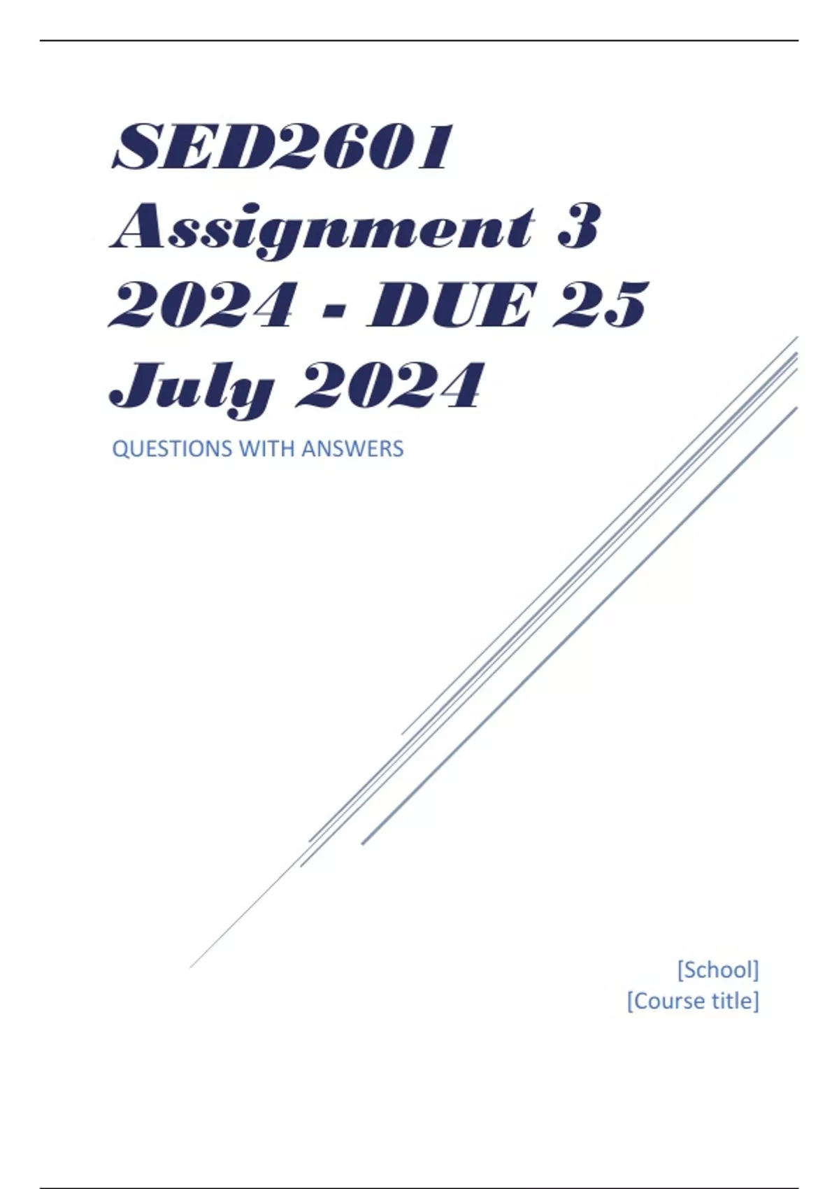 , SED2601 Assignment 3 2024 - DUE 25 July 2024