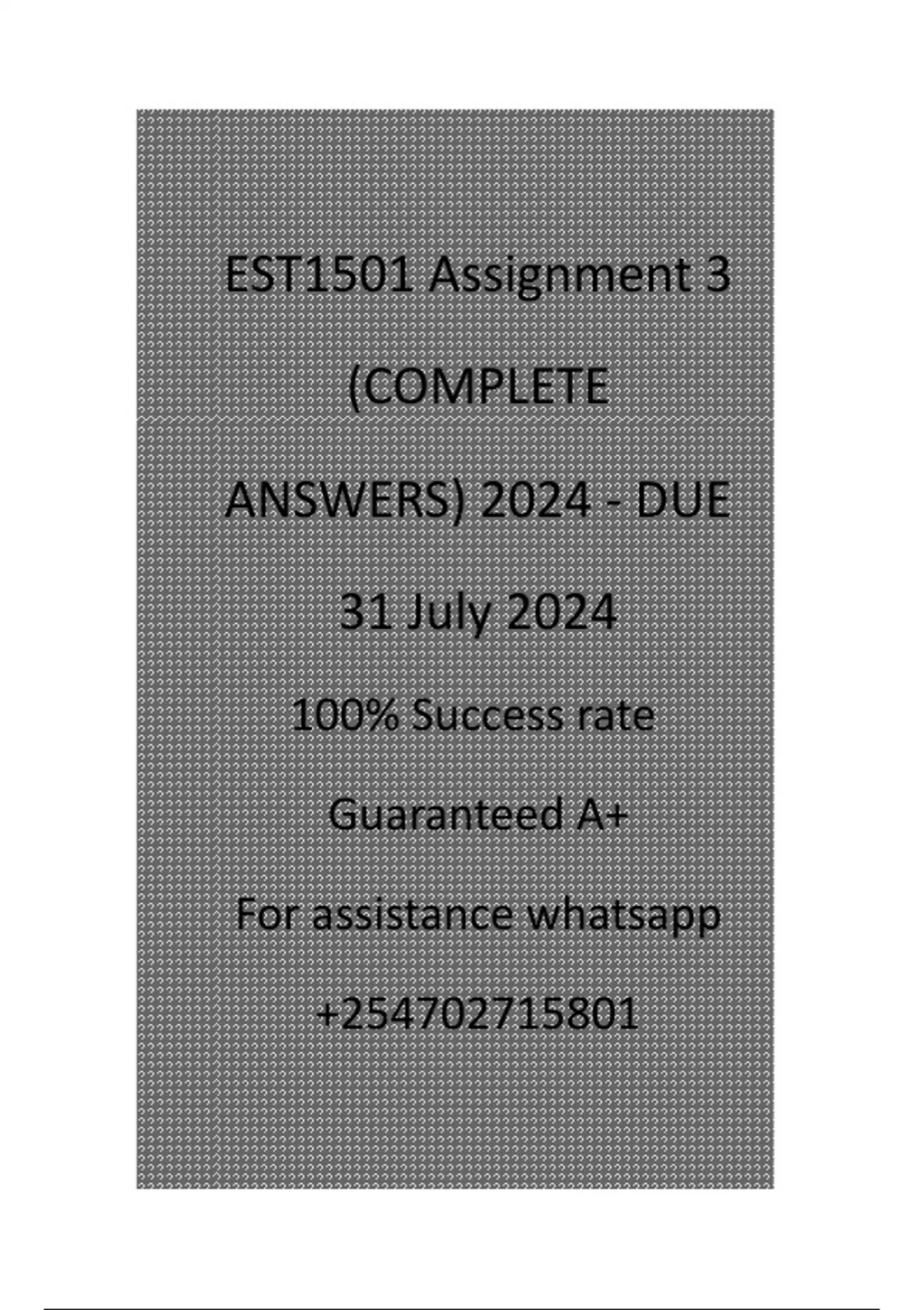 , EST1501 Assignment 3 (COMPLETE ANSWERS) 2024 -
