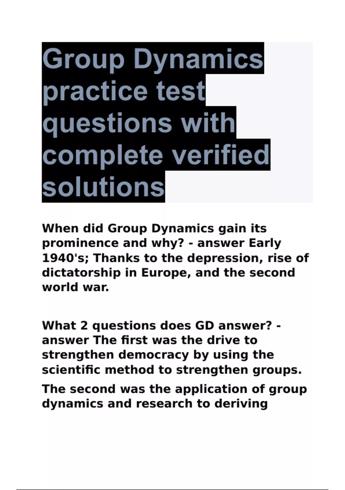 When did Group Dynamics gain its prominence and why? Early 1940's; Thanks to the depression, rise of dictatorship in Europe, and the second world war. What 2 questions does GD answer? The first was the drive to strengthen democracy by using the scientific method to strengthen groups. The second was the application of group dynamics and research to deriving methods of training leaders and group members in the social skills needed to promote effective functioning of democratic groups. Who was Norman Triplet? Indiana University psychological - 1898 Racing Board of the League of American Wheelmen Observed that cyclists' times were faster when they were racing against each their than when they simply raced against the clock. Research on Social facilitation-impairment, social interdependence and social loafing This lead to simple vs. complex tasks with an audience. Simple - audience increased the speed of performance. Complex - audiences decreased the speed of performance. In the late 20s and 30s. We started focusing on "Individuals or groups more productive on problem solving and decision making tasks?" At the end of the late 1930s group dynamics advanced rapidly What was Kurt Lewin best known for? Lewin's Field Theory What was Lewin's field theory? proposed that behavior is the result of the individual and the environment. This theory had a major impact on social psychology, supporting the notion that our individual traits and the environment interact to cause behavior. Kurt became known as the founder of modern social psychology Rodney Dangerfield Era Experimental model- trying to gain respect Study of small groups, in the lab, with undergraduates, manipulating one factor; Cause-effect, Research in the 60s and 70s: Conformity Group polarization Helping Social facilitation Group aggression Bystander Effect Group more likely not to help than if alone Limitations of Lab Experiments Cannot mimic complex environment and cannot mimic ebb and flow of groups over time. Group Two or more individuals who are connected by and within social relationships. Members are connected—linked—together; these relationships are memberships Groups vary in size from dyads and triads to very large aggregations, such as mobs and audiences. Unlike networks, groups usually have boundaries that define who is in the group and who is not Unlike categories, members are socially connected, not just in the same grouping or collection (e.g., all men, bricklayers...) Most tend to be small, having 2 to 7 members. Social Categories As social identity theory explains, in many cases broad ____ _____ can become psychologically meaningful to members, and in those cases social categories function very much like dynamic, socially based groups Interdependence Mutual dependence, as when one's outcomes, actions, thoughts, feelings, and experiences are influenced, to some degree, by other people Structure The underlying pattern of roles, norms, and relations among members that organizes groups Group Structure The persistent and interrelated features of a group, such as roles and norms, that influence, the functioning of the group as a whole and create regularities in the interactions of its members. Roles Socially shared set of behaviors, characteristics, and responsibilities expected of people who occupy a particular position or type of position Norm Consensual and often implicit standard that describes what behaviors should and should not be performed in a given context Group Cohesion Solidarity or unity of a group resulting from the development of strong and mutual interpersonal bonds among members and group-level force that unity the group, such as shared commitments to group goals and esprit de corps. In the 1950's, sociologists looked at groups as ______ ____ ______. miniature social systems Mead's Philosophy We learn about our world from play Cooley was known for Social Organization Durkheim father of? Sociological Thought Four types of Group Goals and Tasks 1.Generating: concocting strategies, producing new ideas, developing plans, create novel solutions. 2. Choosing: Selecting between alternatives, settling on a single option among many, making a choice. 3. Negotiating: Managing differences of opinions, resolving conflicts and disputes, improving coordination. 4. Executing: Taking action, carrying out a plan, making something, performing a task Entitativity The apparent cohesiveness or unity of an assemblage of individuals. Micro Level studying of groups Focus on the individual (psychological) Meso (group) Level studying of groups focus on the group and the social context (sociological) Macro Level Studying of Groups focus on organizational/community level Multi Level Studying of Groups adopts multiple perspectives of groups Group Dynamics the influential actions, processes and changes that take occur within groups and between groups; also, the scientific study of those processes What was the finding of sociologist John James, who studied 9,129 different groups in Eugene and Portland, Oregon? He found that groups tend to gravitate to the smallest size, two.