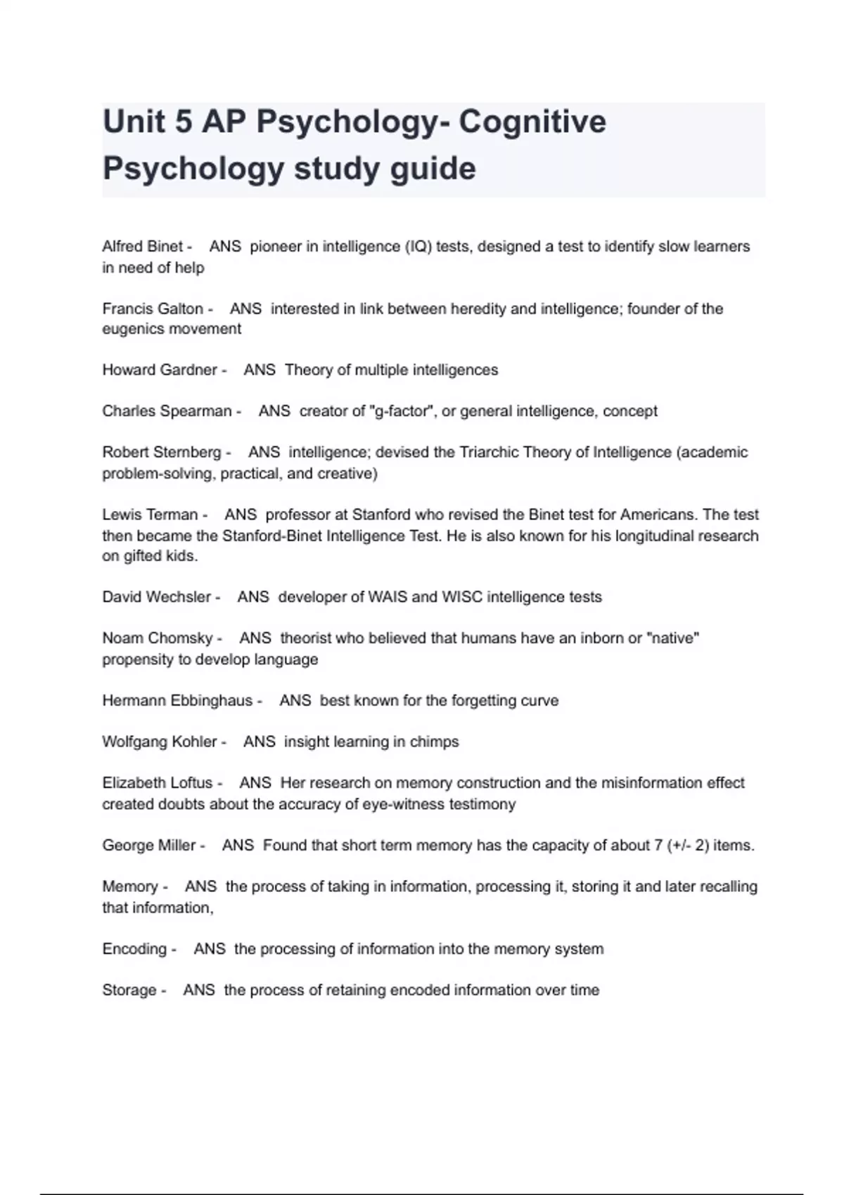 Unit 5 AP Psychology- Cognitive Psychology study guide