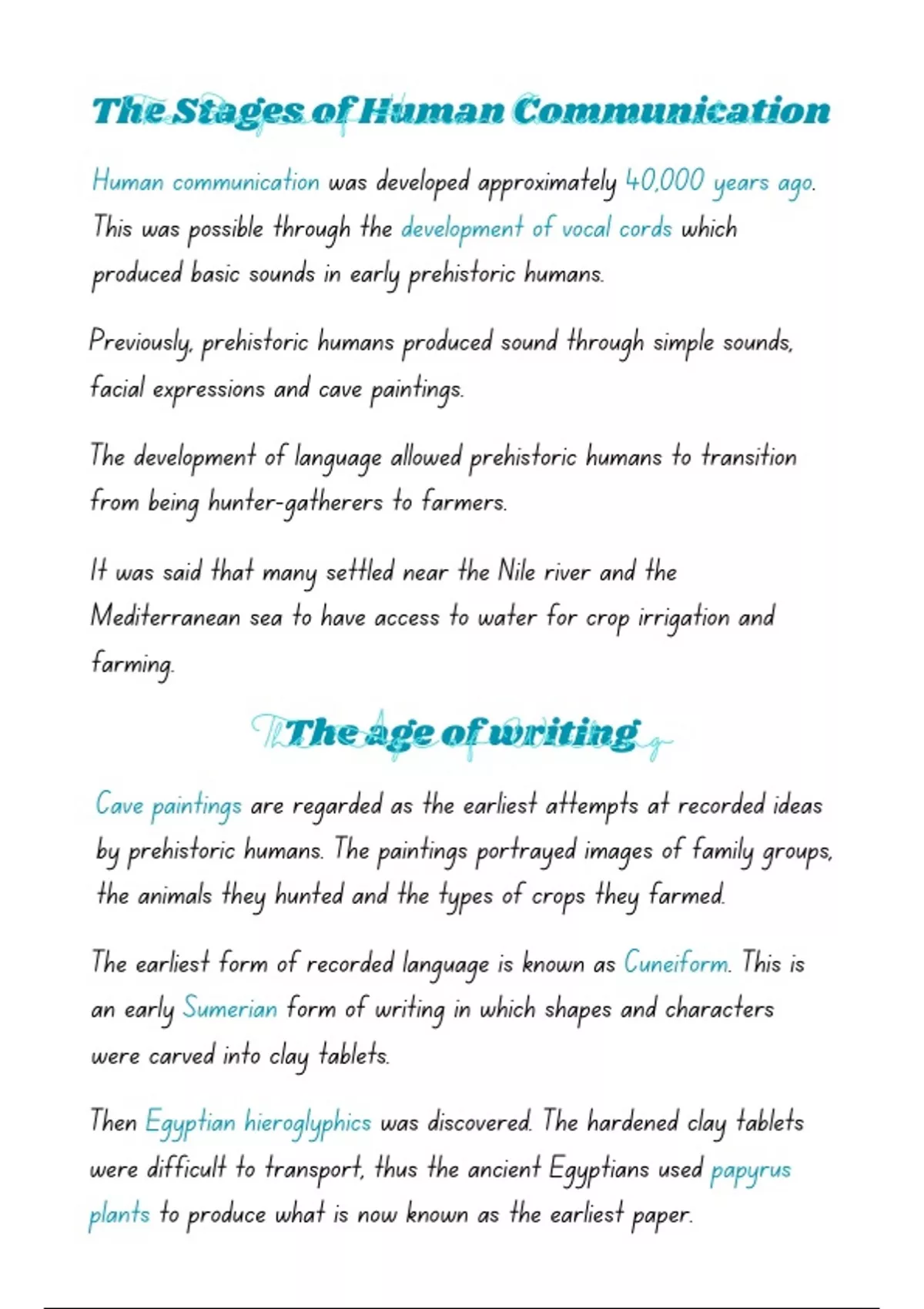 The development of language allowed prehistoric humans to transition