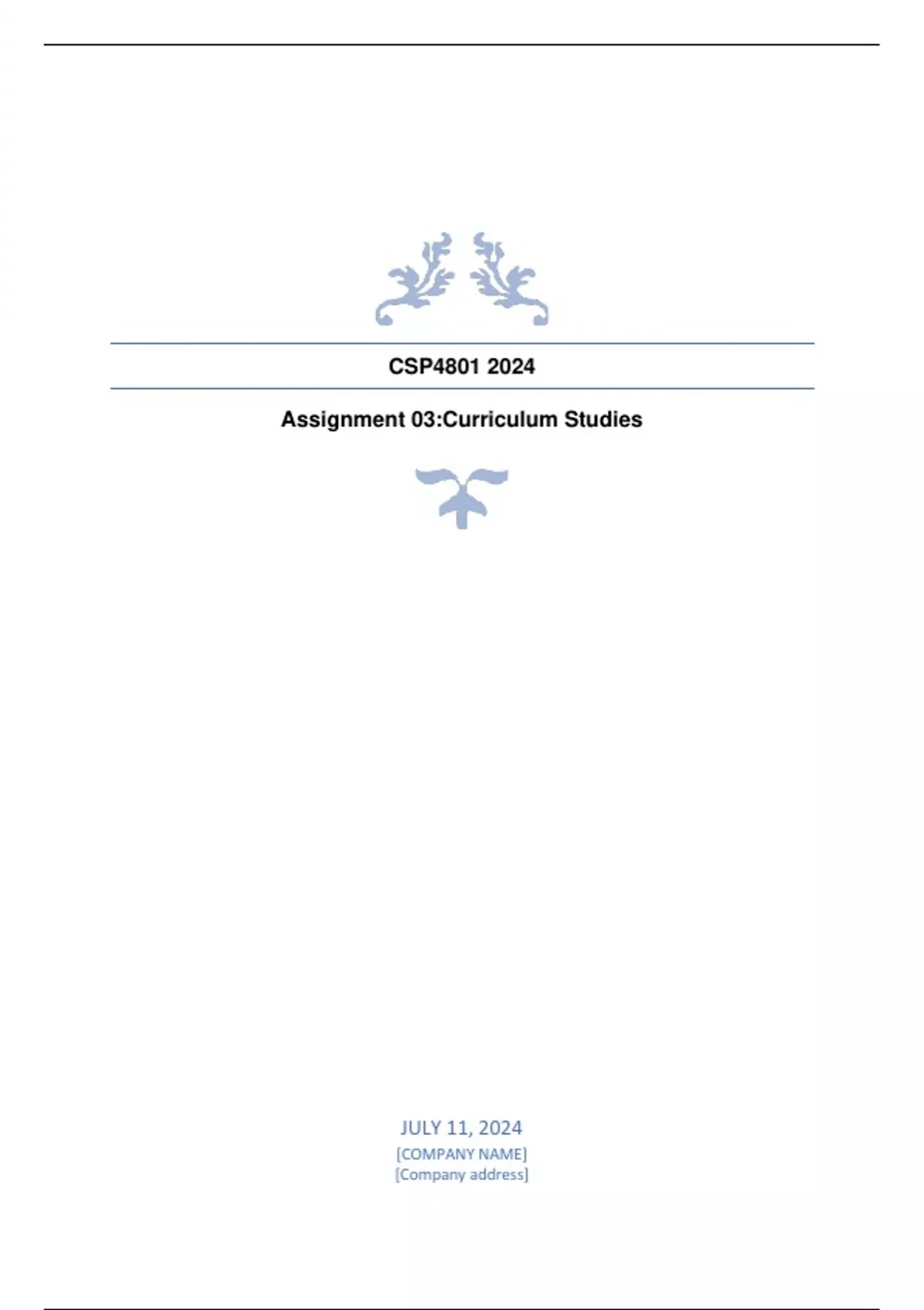 Exam of 5 pages for the course CSP4801 at Unisa (CSP ASSIGNMENT 3.)