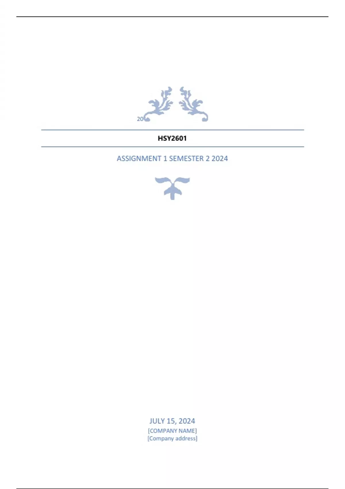 20 HSY2601 ASSIGNMENT 1 SEMESTER 2 2024 JULY 15, 2024 [COMPANY NAME] [Company address]