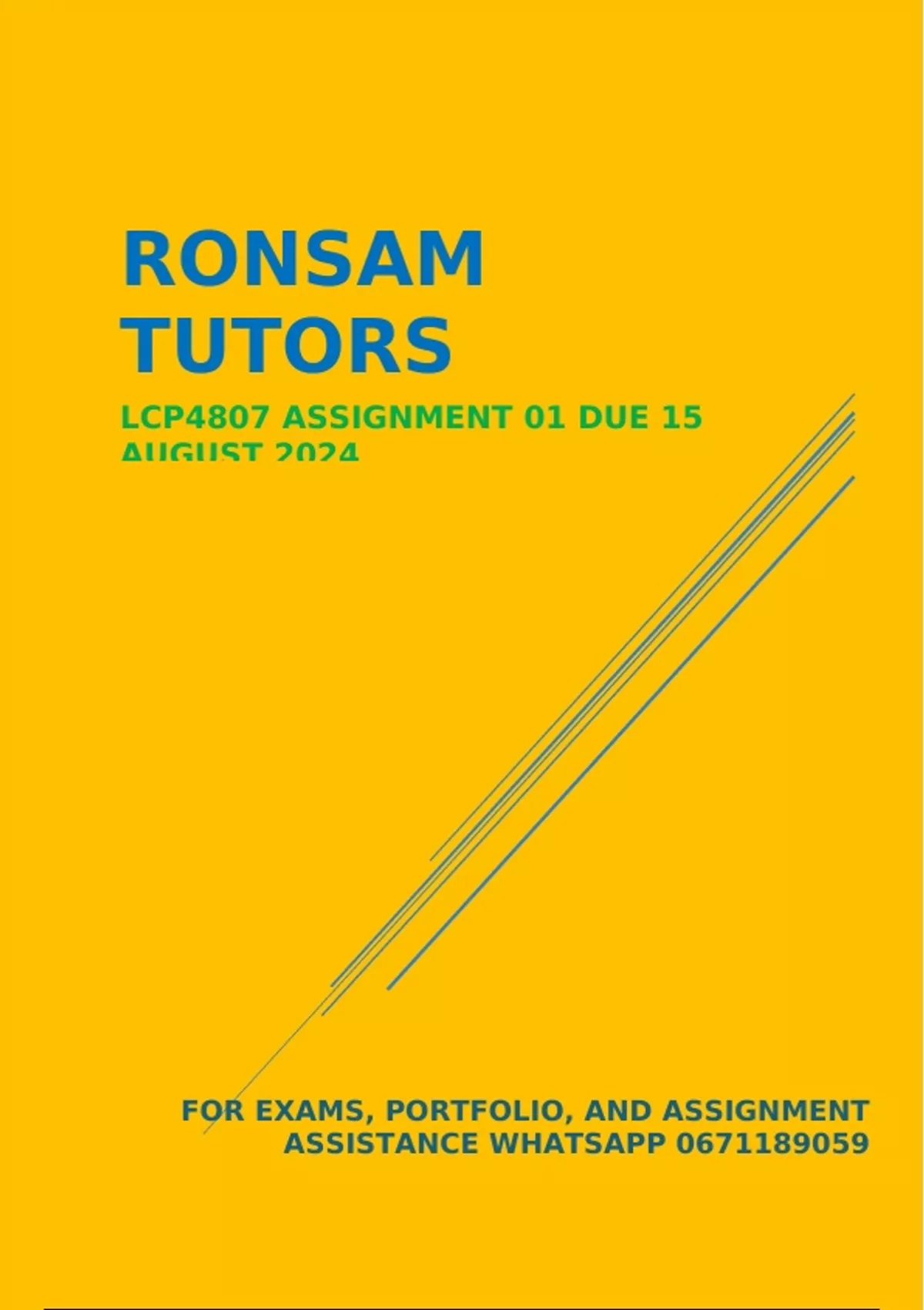 LCP4807 ASSIGNMENT 01 DUE 15