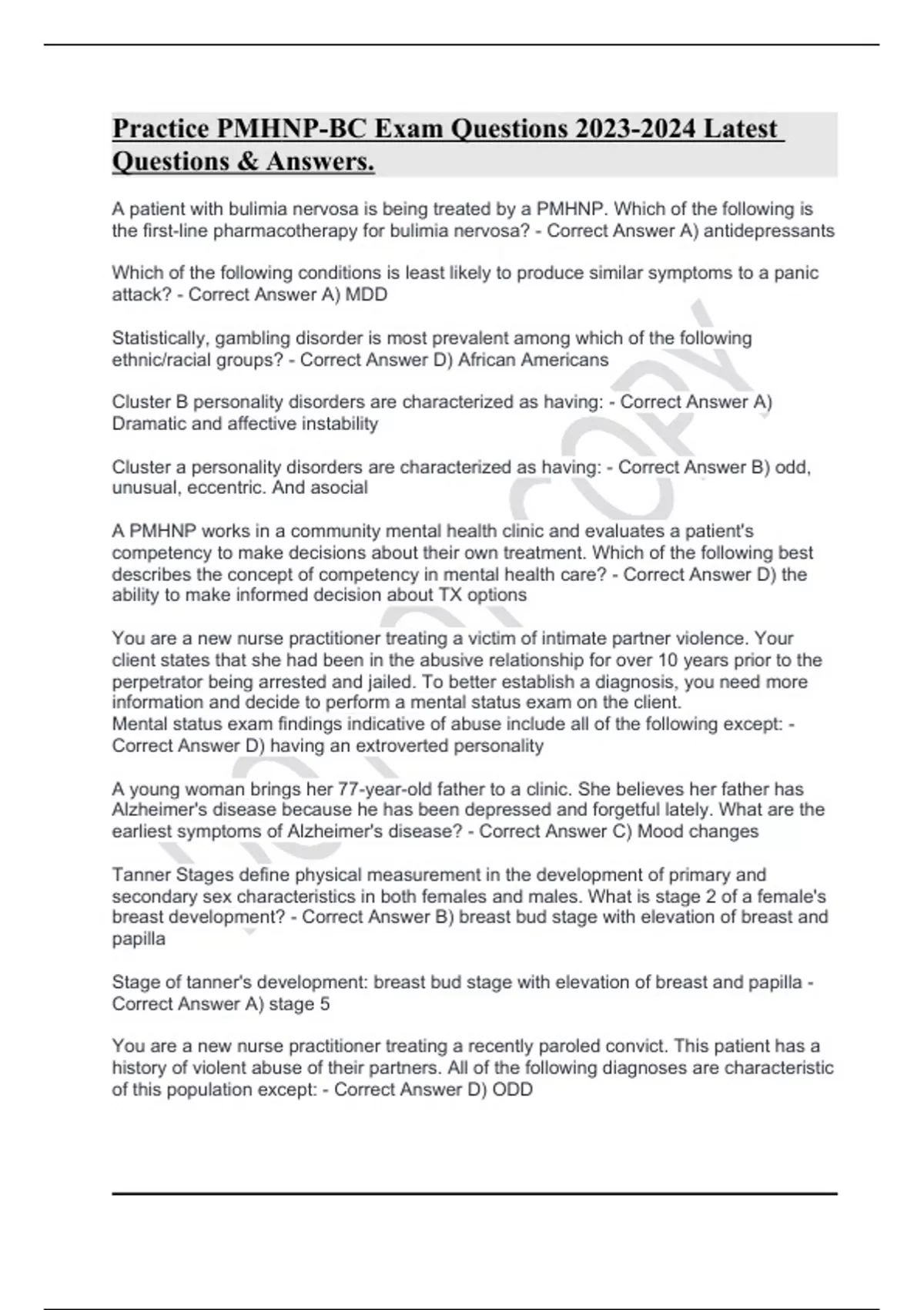 Practice PMHNP-BC Exam Questions Latest Questions & Answers.Practice PMHNP-BC Exam Questions Latest Questions & Answers.Practice PMHNP-BC Exam Questions Latest Questions & Answers.