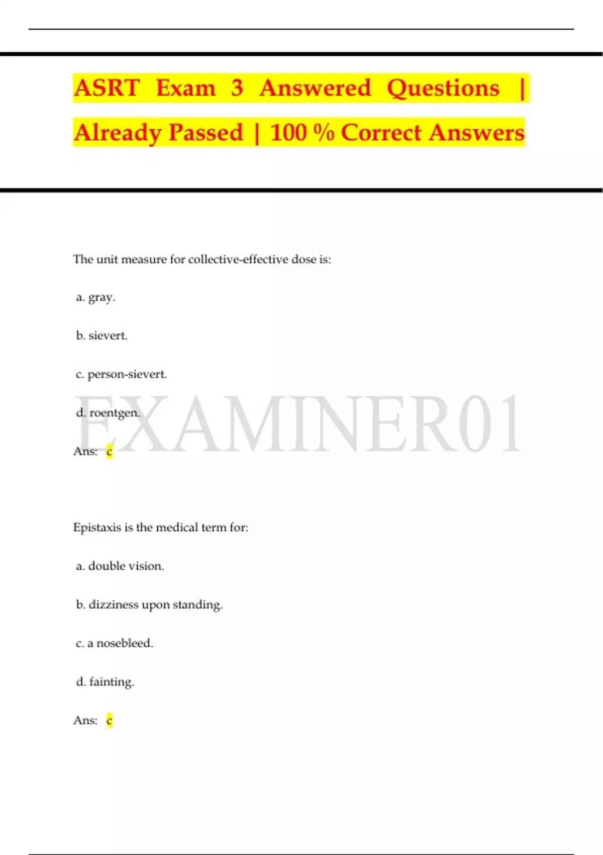 ASRT Exam 3 Answered Questions | Already Passed | 100 % Correct Answers