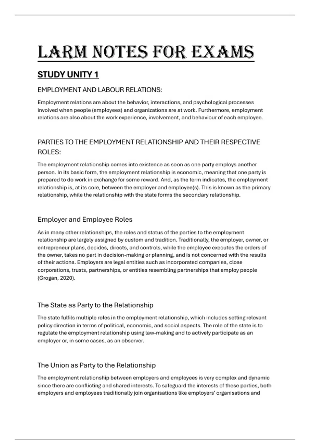 PARTIES TO THE EMPLOYMENT RELATIONSHIP AND THEIR RESPECTIVE