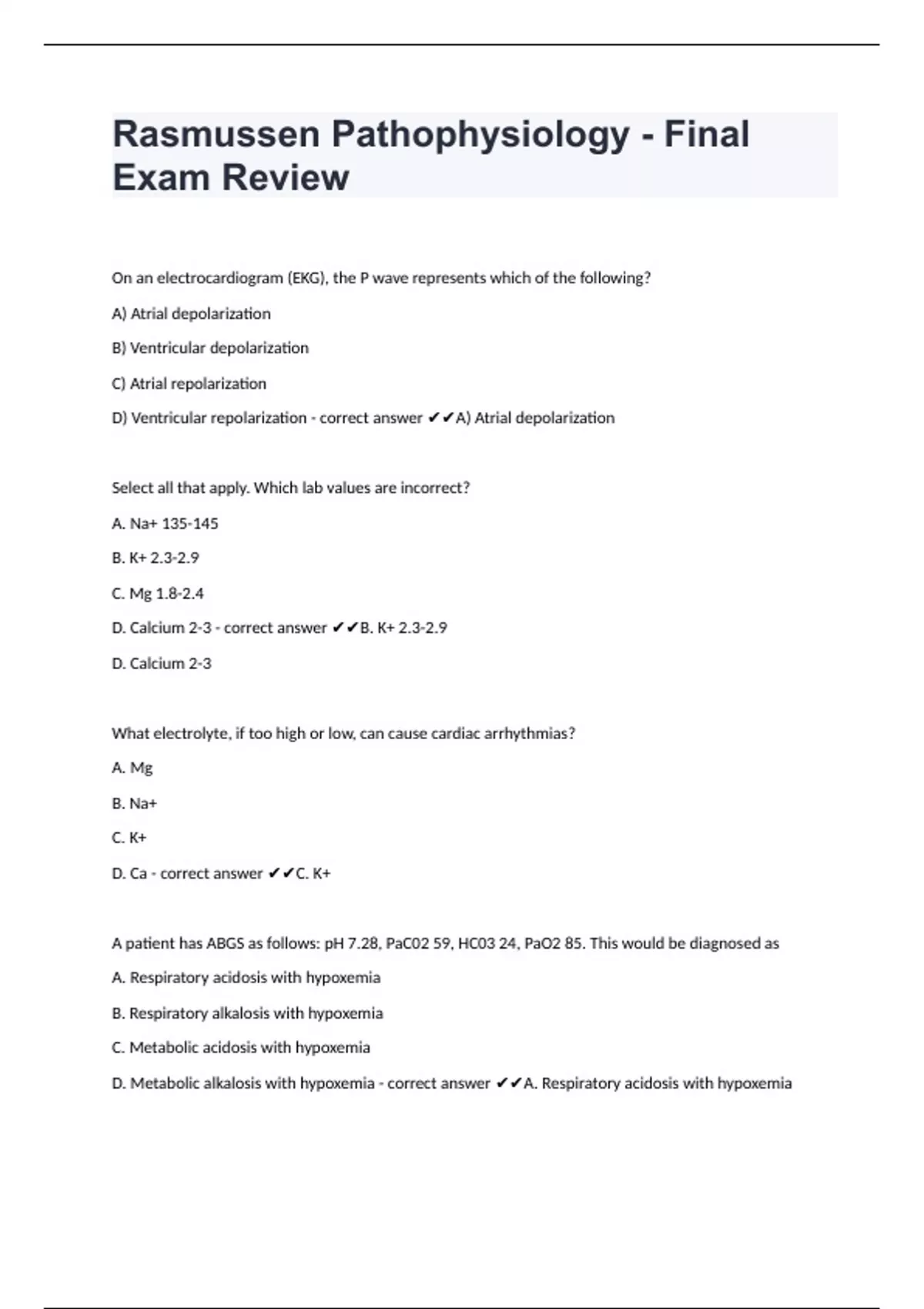 Rasmussen Pathophysiology - Final Exam Review updated already passed