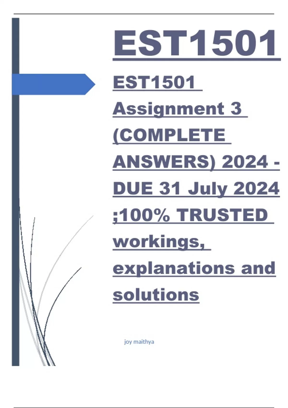 EST1501 Assignment 3 (COMPLETE ANSWERS) 2024 - DUE 31