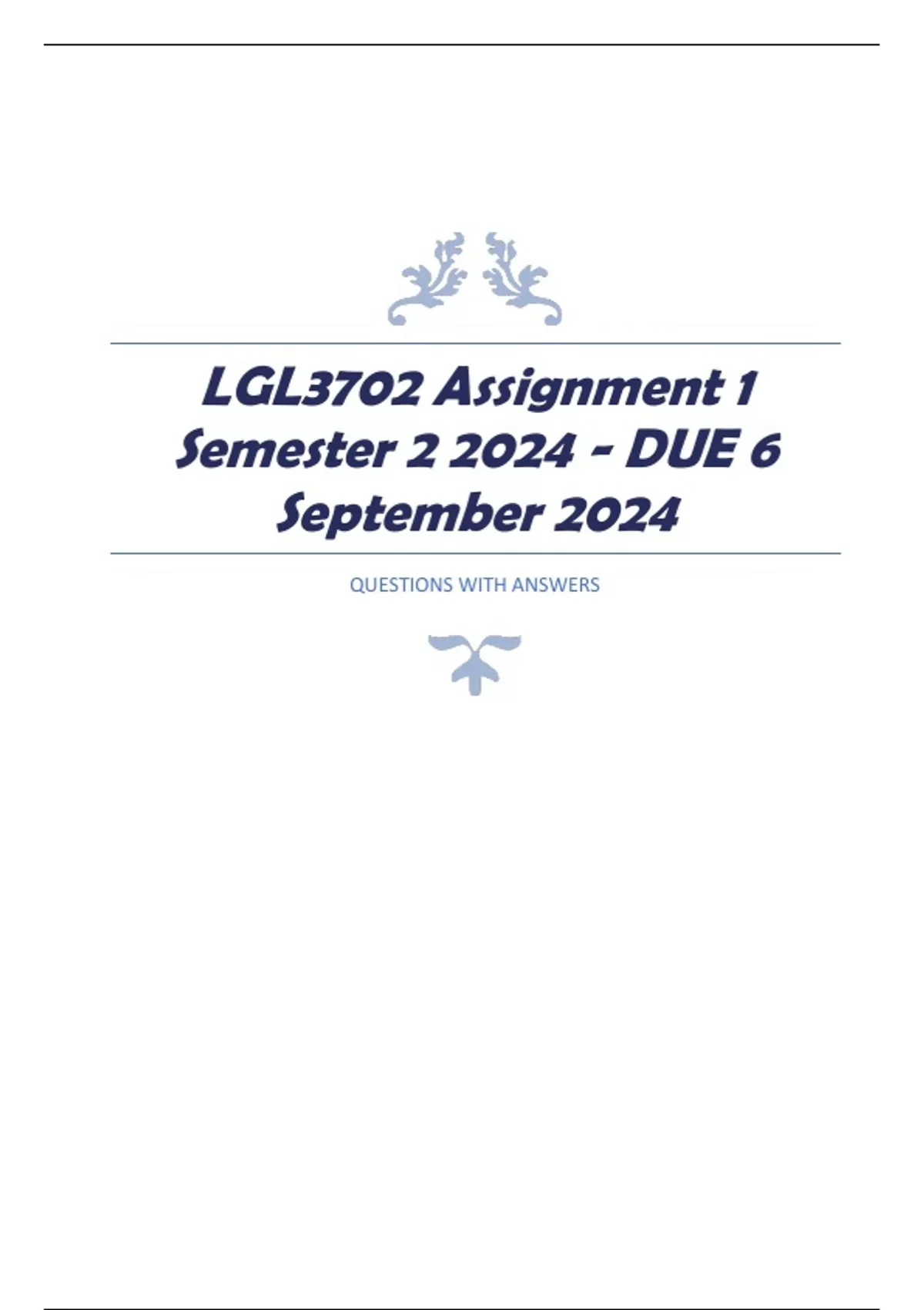 QUESTIONS WITH ANSWERS LGL3702 Assignment 1 Semester 2 2024 - DUE 6 September 2024