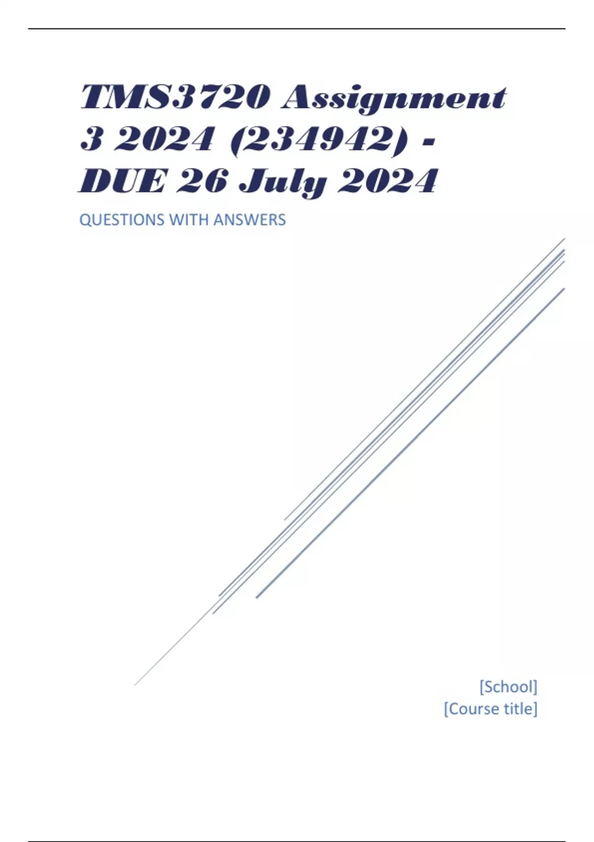 TMS3720 Assignment 3 2024 (234942) - DUE 26 July 2024 QUESTIONS WITH ANSWERS